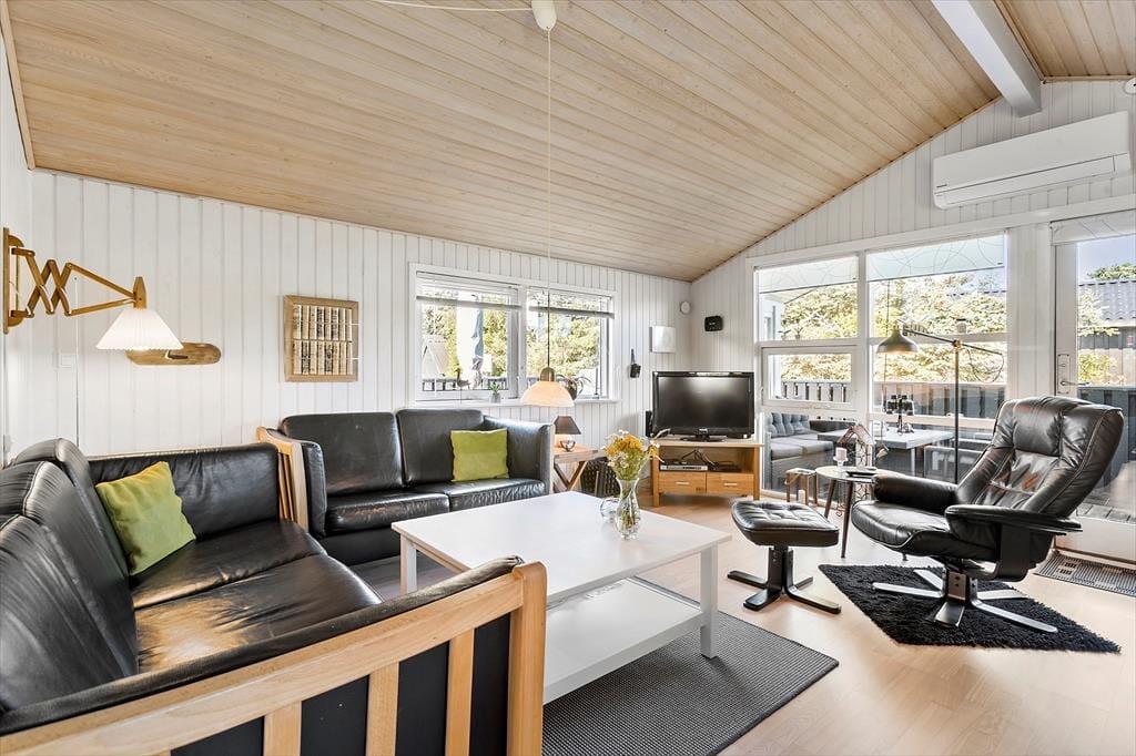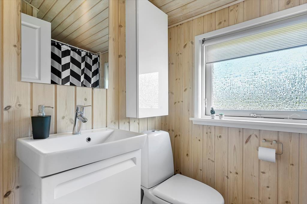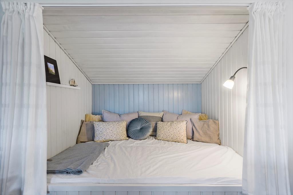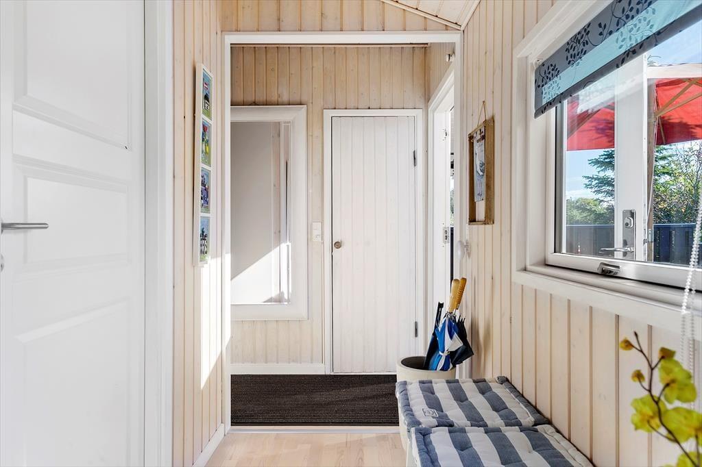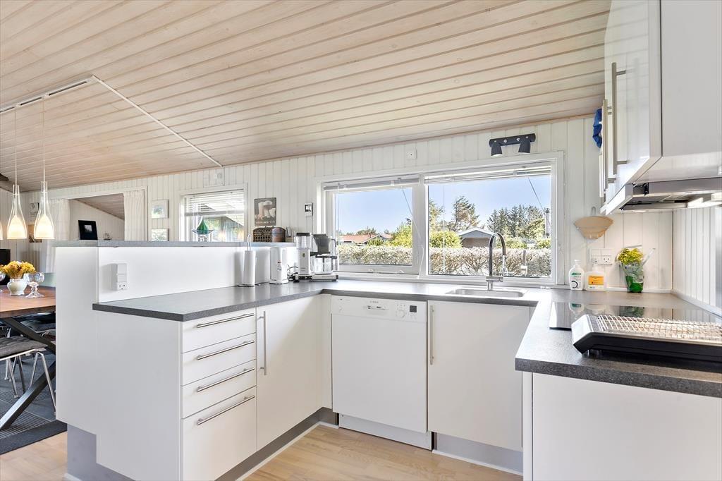 Et sommerhus med gennemført hyggelig indretning, hvor ejernes store kærlighed til stedet skinner klart igennem. Alt er velholdt og i fin kvalitet, så her kan man virkelig nyde sin ferie i de skønneste rammer. Køkkenet er af nyere dato og ligger ud-i-et med spisestue og stue, hvor der kan tændes op i brændeovnen, hvis vejret er køligt. Huset råder over tre soveværelser med dobbeltsenge, hvoraf de to er placeret i en moderne vinkeltilbygning ved entreen, og i stuen finder man en indbygget alkove, som kan bruges til hyggested eller som en ekstra soveplads. Overalt kan man gå på det gratis og trådløse internet, så det er en god ide at pakke pc eller tablets med til opholdet.
