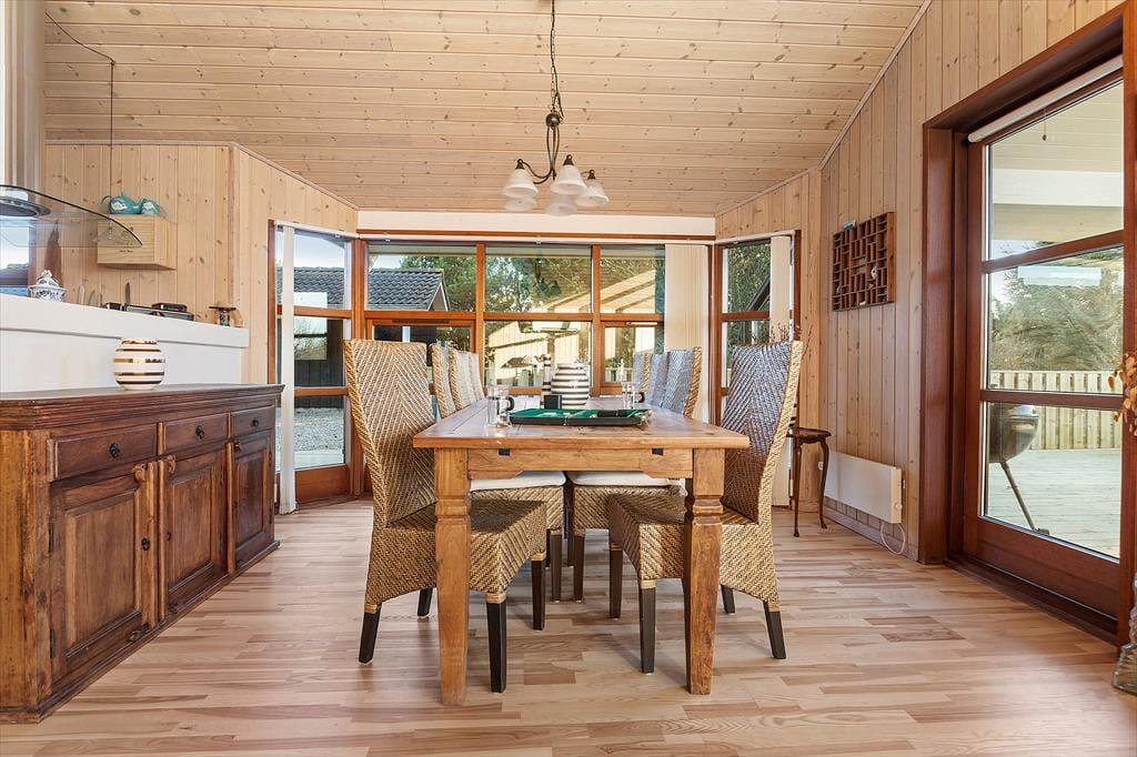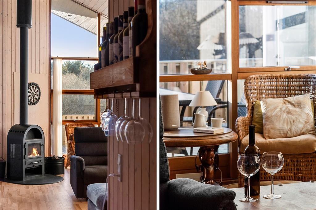 Sommerhuset er godt vedligeholdt,og charmerende og smagfuldt indrettet med åbent køkken-alrum, tre værelser og to badeværelser. Her er god plads til både en familie eller til to par, som gerne vil tilbringe feriedagene sammen. Alt er lagt an til en afslappende ferie med plads til at koble helt af; f.eks. kan man på det store badeværelse fylde spabadet med dejligt varmt vand og tænde op i saunaen for at skabe lidt wellness-stemning. I stuen er der siddepladser nok i sofaen og lænestolene til at hele familien kan samles foran tv’et, og med ild i brændeovnen spreder den hyggelige stemning sig hurtigt, også hvis man holder ferie udenfor sommersæsonen. Desuden er sommerhuset godt udstyret med opvaskemaskine, vaskemaskine, tørretumbler og trådløst internet, så alle faciliteter for at skabe en vellykket ferie er fuldt ud tilstede.