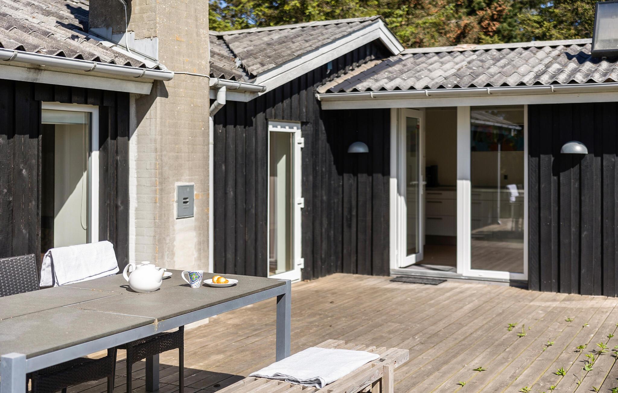 Udnyt den rummelige træterrasse, der omgiver huset. Tag plads i de komfortable loungemøbler og nyd jeres måltider udendørs. Lyt til vinden i træerne og nyd afsondretheden midt i naturen.