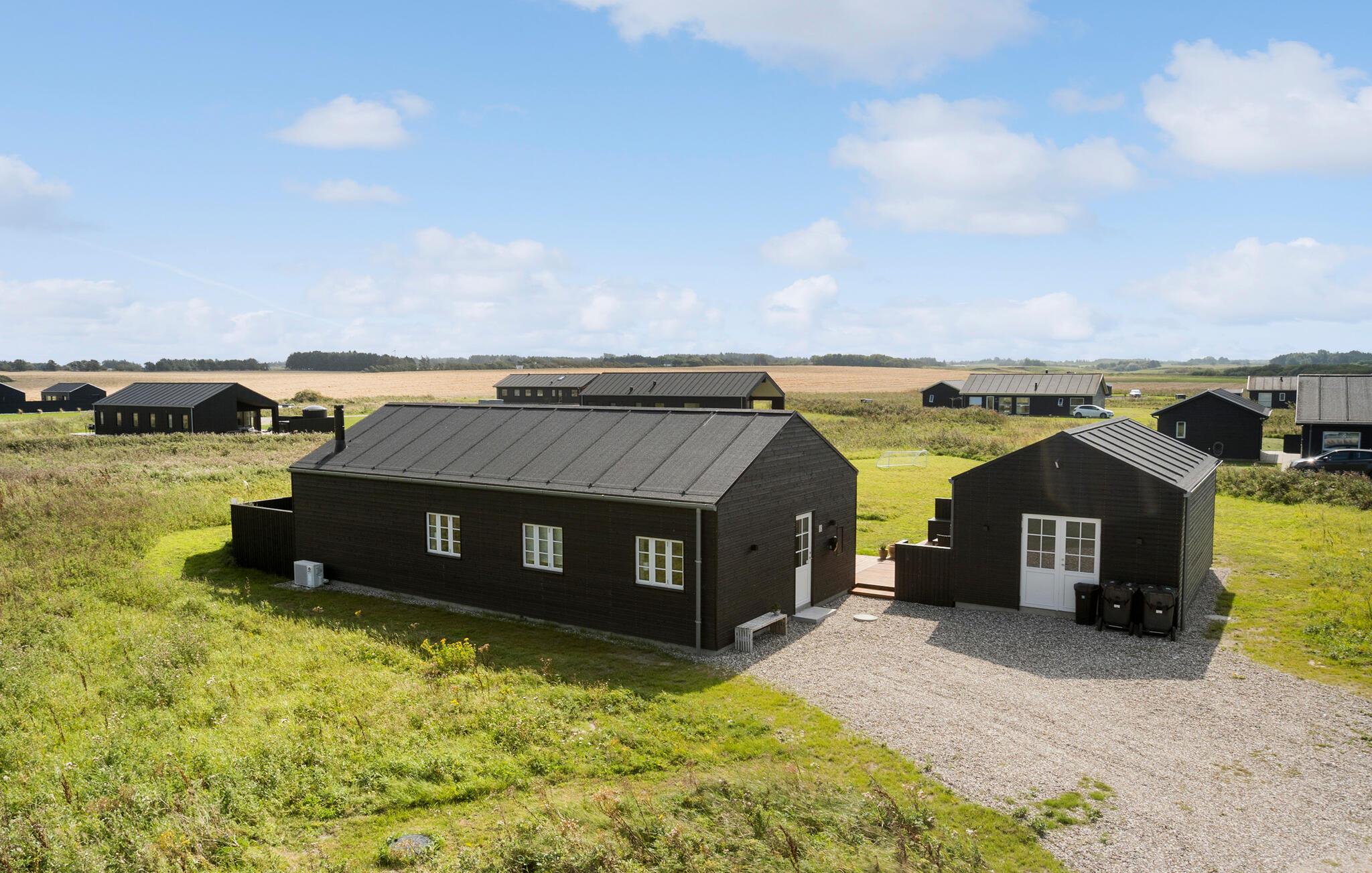 Nyd en moderne feriebolig i Grønhøj med spabad, brændeovn og stor naturgrund tæt på Jammerbugten.