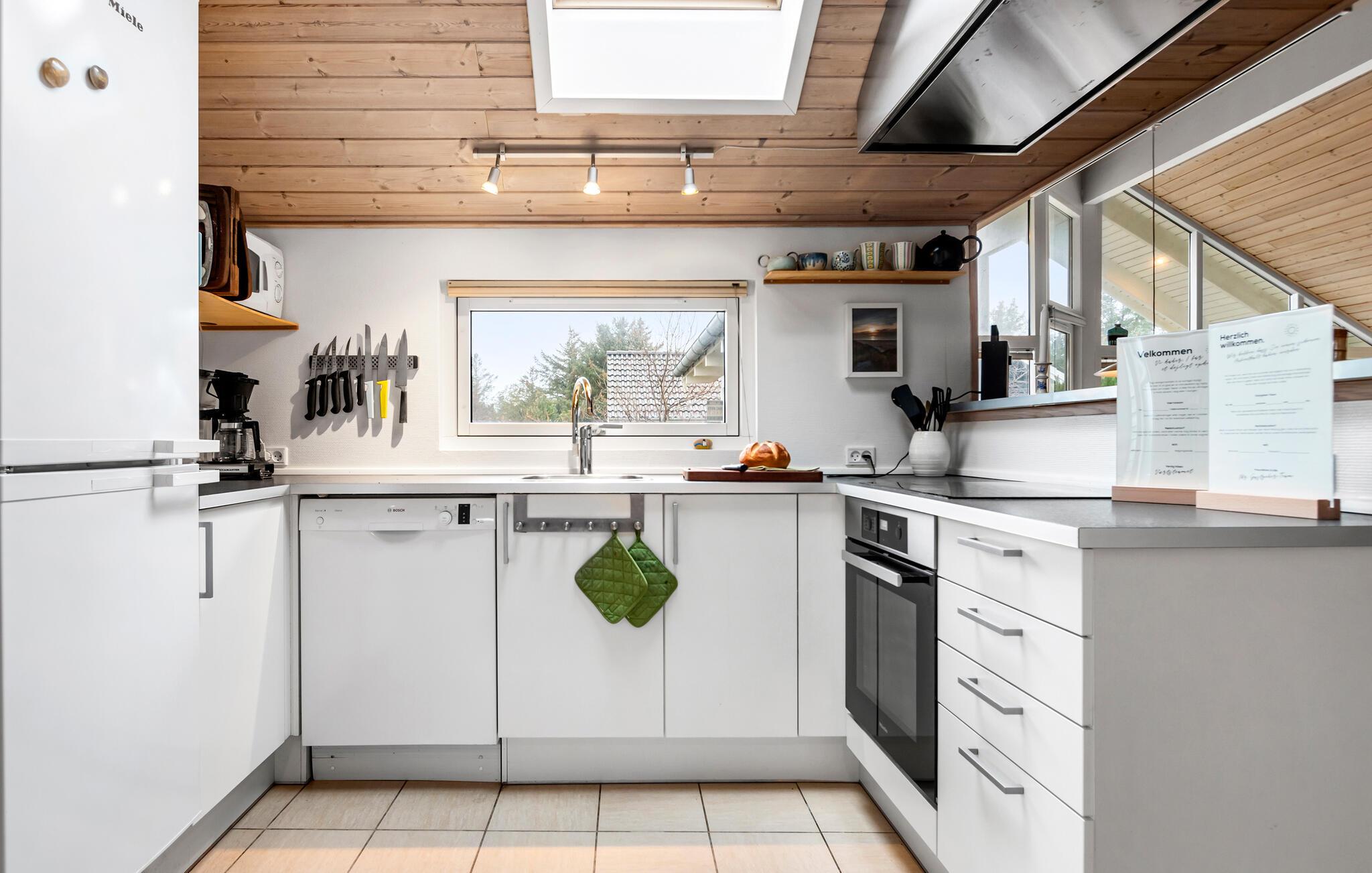 Dette indbydende sommerhus ved Grønhøj Strand ligger i kort afstand til de populære feriemål Løkken og Blokhus. Her får I et godt udgangspunkt for at nyde den betagende natur og helt særlige atmosfære, som hersker på den nordjyske vestkyst. Læg hverdagen bag jer og glæd jer til en afslappende pause i det rummelige hus, hvor der er plads til to familier. Huset emmer af hygge, ro og feriestemning. Læn jer godt tilbage i de komfortable sofaer, nyd dagens måltider ved det lange spisebord og glæd jer over varmen fra ilden i den knitrende brændeovn, når I vender hjem fra en frisk udflugt.