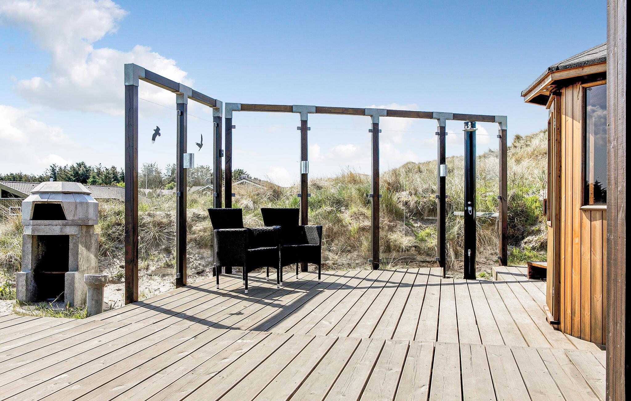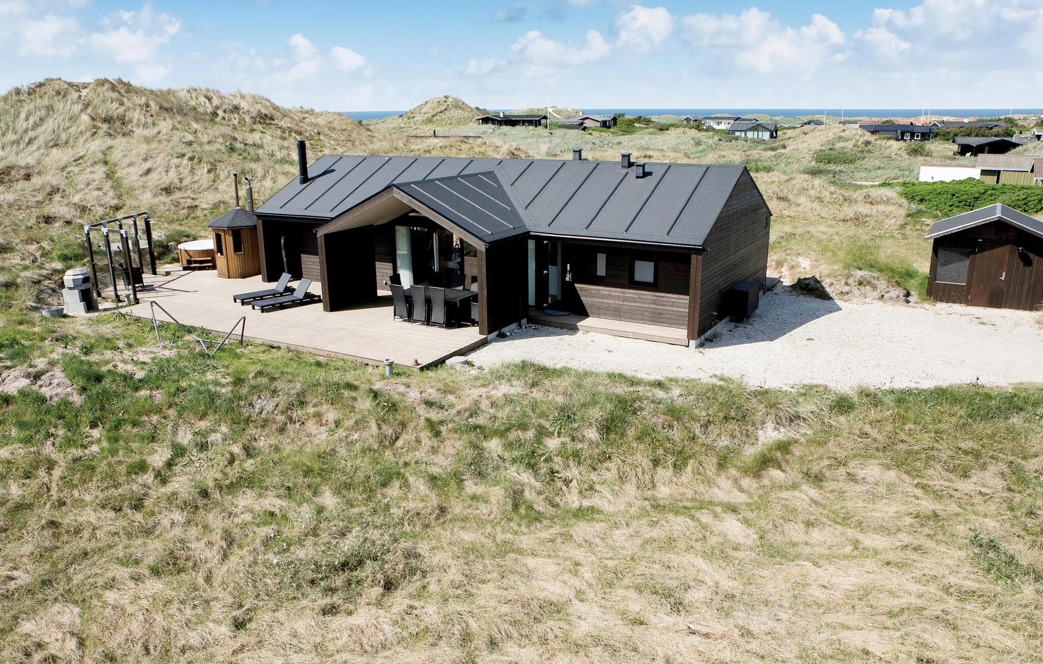 På en meget stor klitgrund med udsigt til åbne arealer, ligger dette helt igennem fantastiske sommerhus, som er gedingt og flot bygget. Der er en dejlig terrasse rundt om huset og også med en overdækket del. Her er et dejligt udemiljø med hottub, hvor I kan sidde i det varme vand, og naturen hele året rundt, hyggelig sauna og undendørs bruser. Huset er lyst og flot indrettet med køkkenet centralt placeret i huset, og direkte adgang til den dejlige stue med store vinduespartier der gør, at den flotte terrasse og naturen kommer ind i stuen. Der er dejlige rummelige værelser og et meget flot badeværelse. Et flot hus, til dem som ønsker at nyde ferien ved Vesterhavet, som kun ligger i gåafstand fra huset.