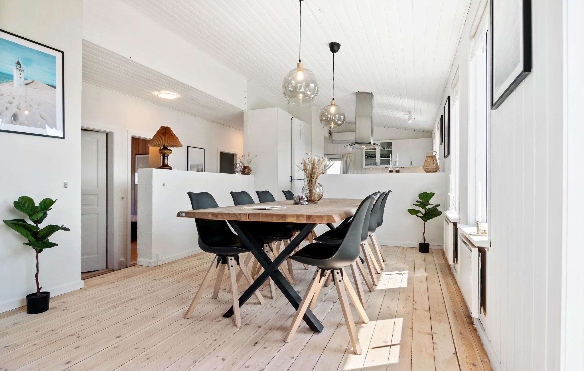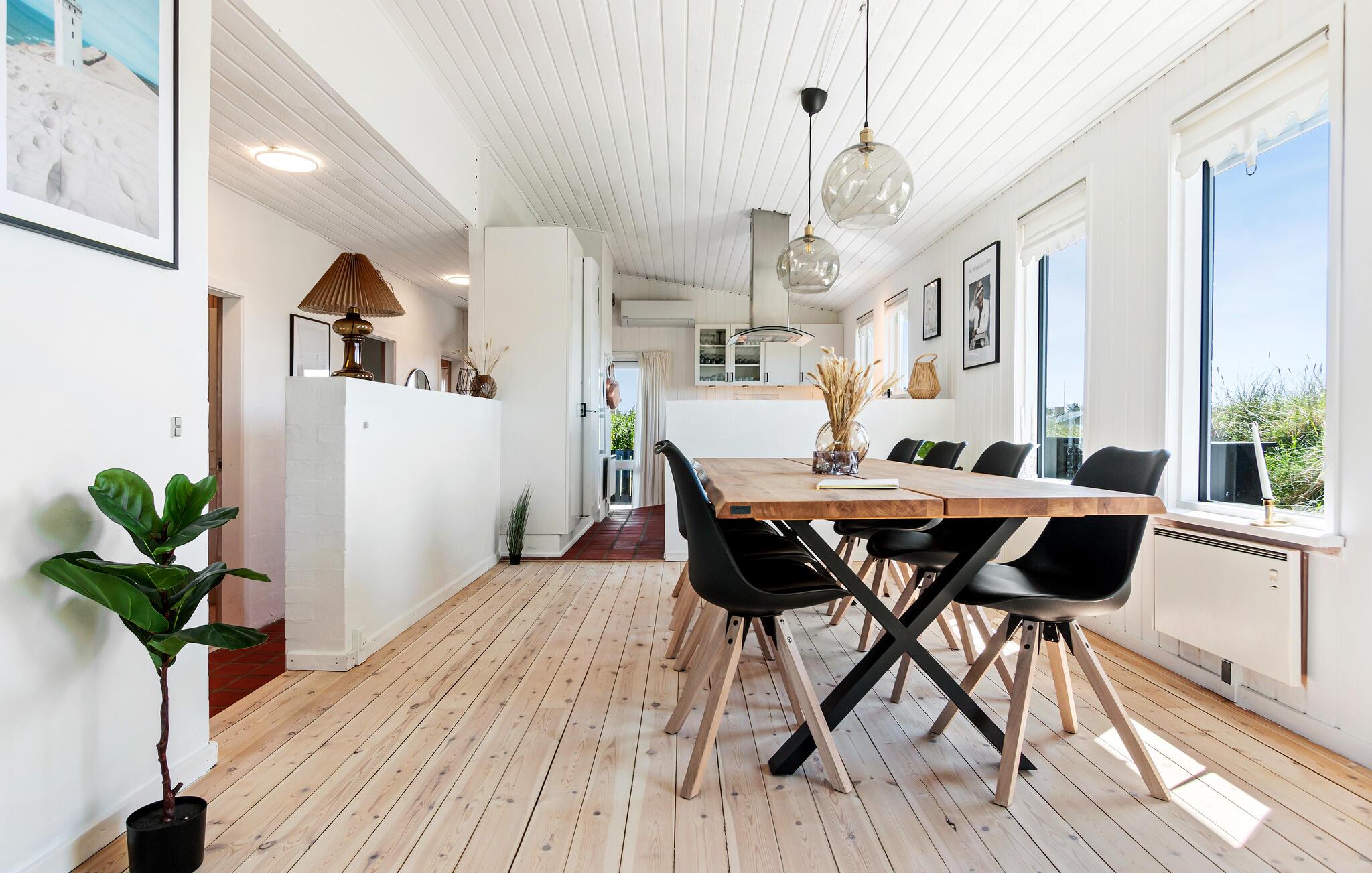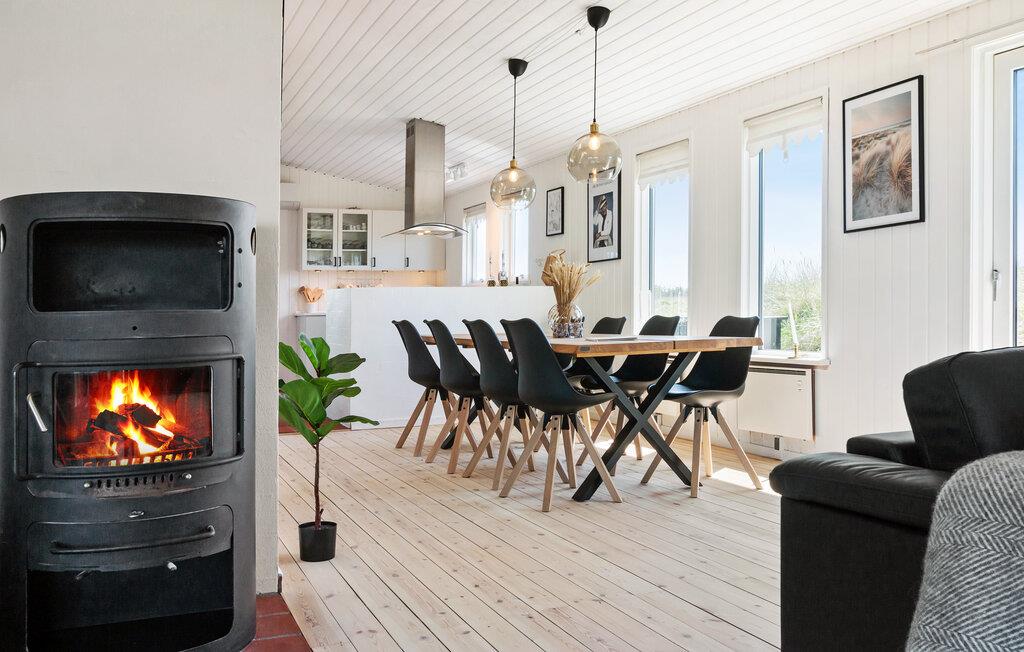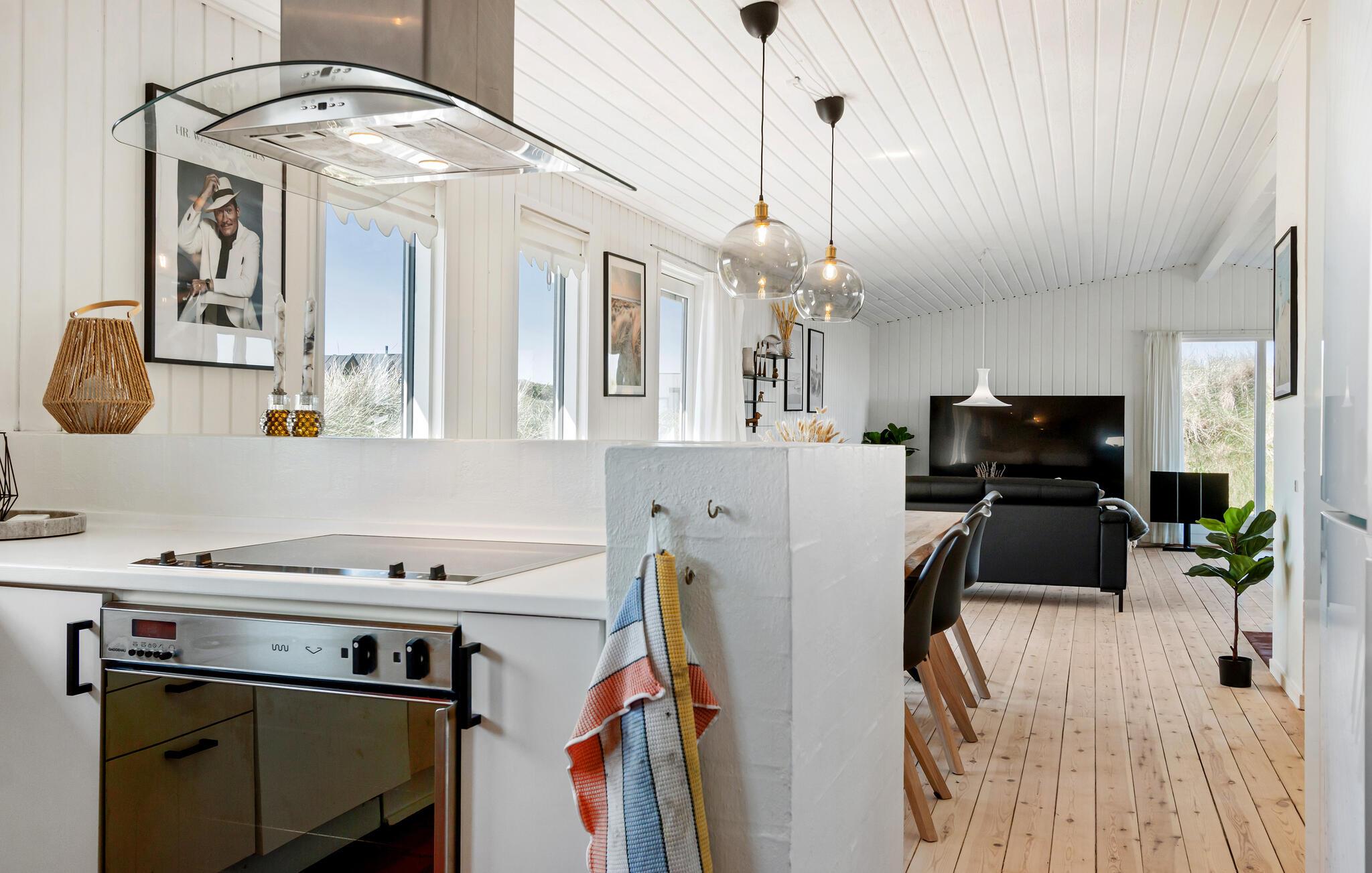 Tag familien under armen og rejs til det nordlige Jylland, hvor I tæt på stranden og Løkken får base i dette lækre hus. I bor smukt omgivet af klitterne, og huset er virkelig flot indrettet med velholdte træpaneler, åbent boligkoncept og store vinduespartier, der giver dejlige lysindfald og en vidunderlig udsigt til omgivelserne. Hvis vejret bider lidt fra sig, kan I fyre op i brændeovnen, der giver varme og et knitrende lydtapet til madlavningen i det veludstyrede køkken, måltiderne ved det rustikke træbord og aftenhyggen i sofahjørnet.