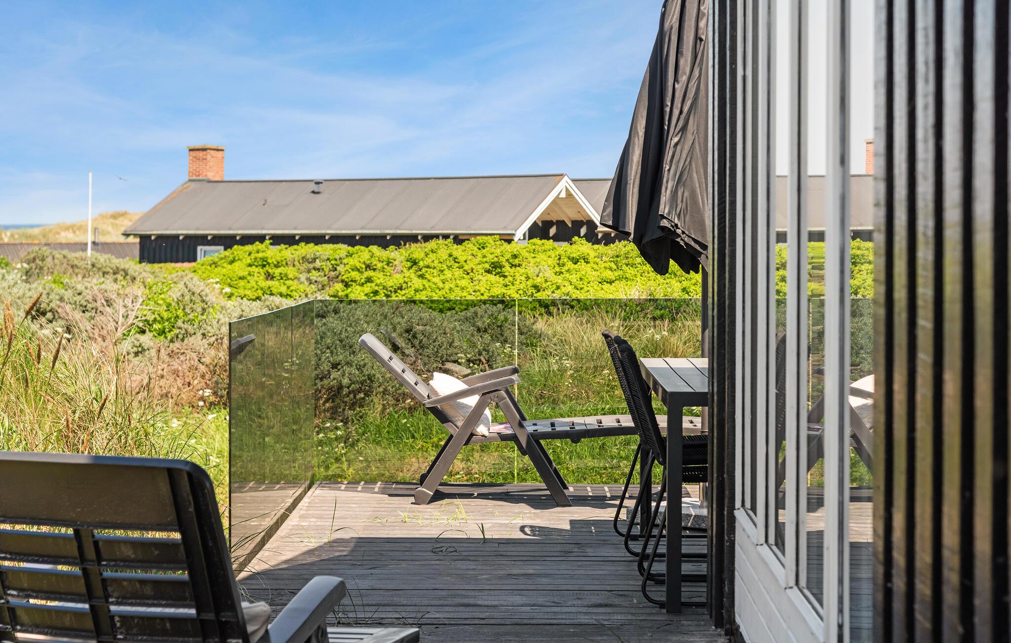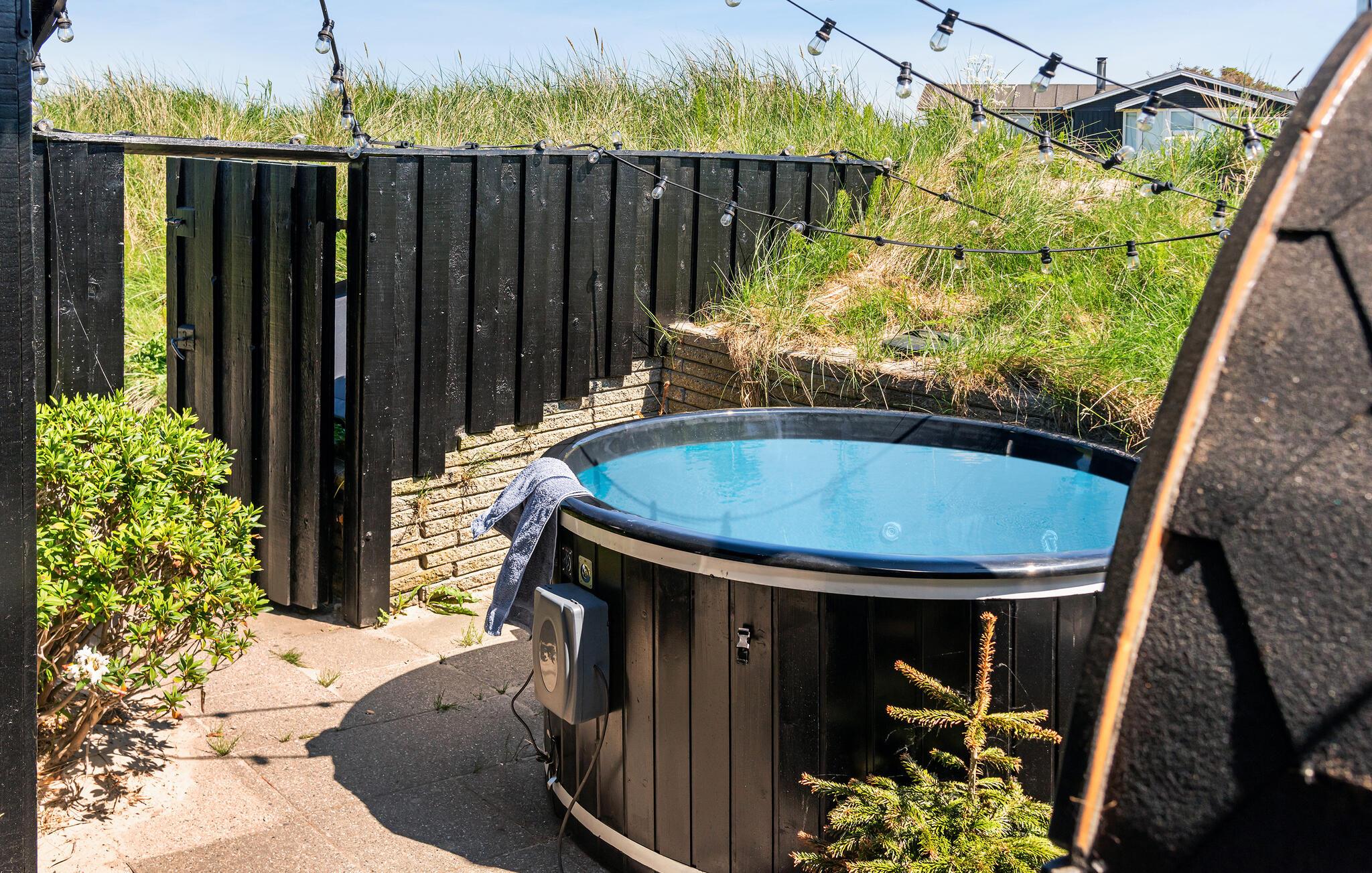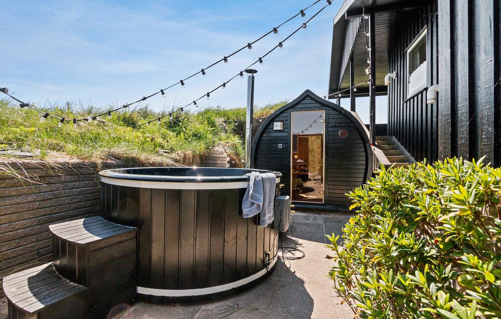 Udeområdet er mindst lige så tiltalende. Huset ligger på en stor klitgrund med en terrasse, hvor I kan nyde morgenkaffen og alle dagens måltider, når vejret er godt. Udfordr hinanden til et slag dart, pool eller bordtennis i aktivitetsrummet, inden I tænder op i grillen hen under aftenen. Og måske I skal forkæle jer selv med en aftentur i saunaen eller vildmarksbadet under stjernerne?