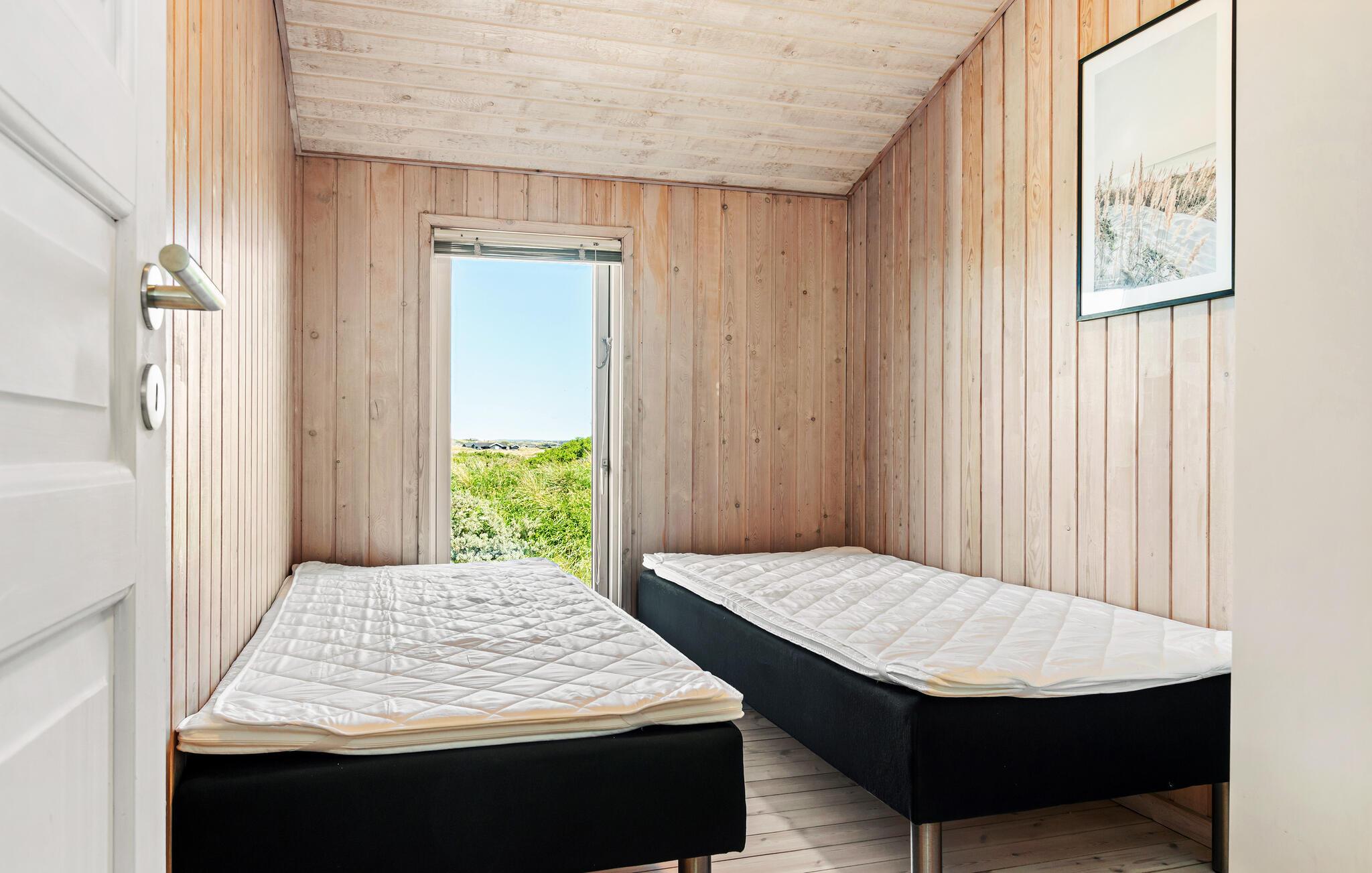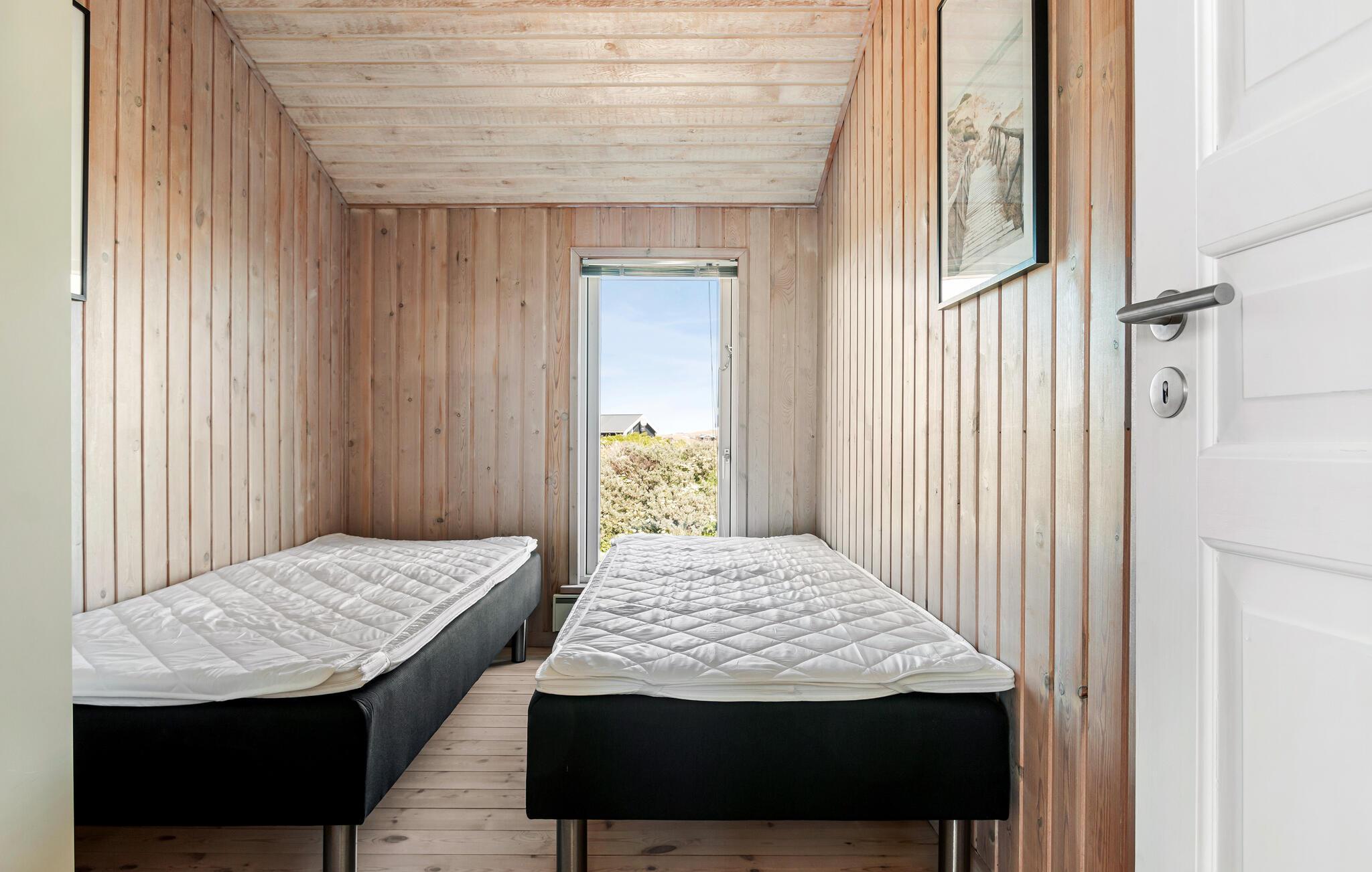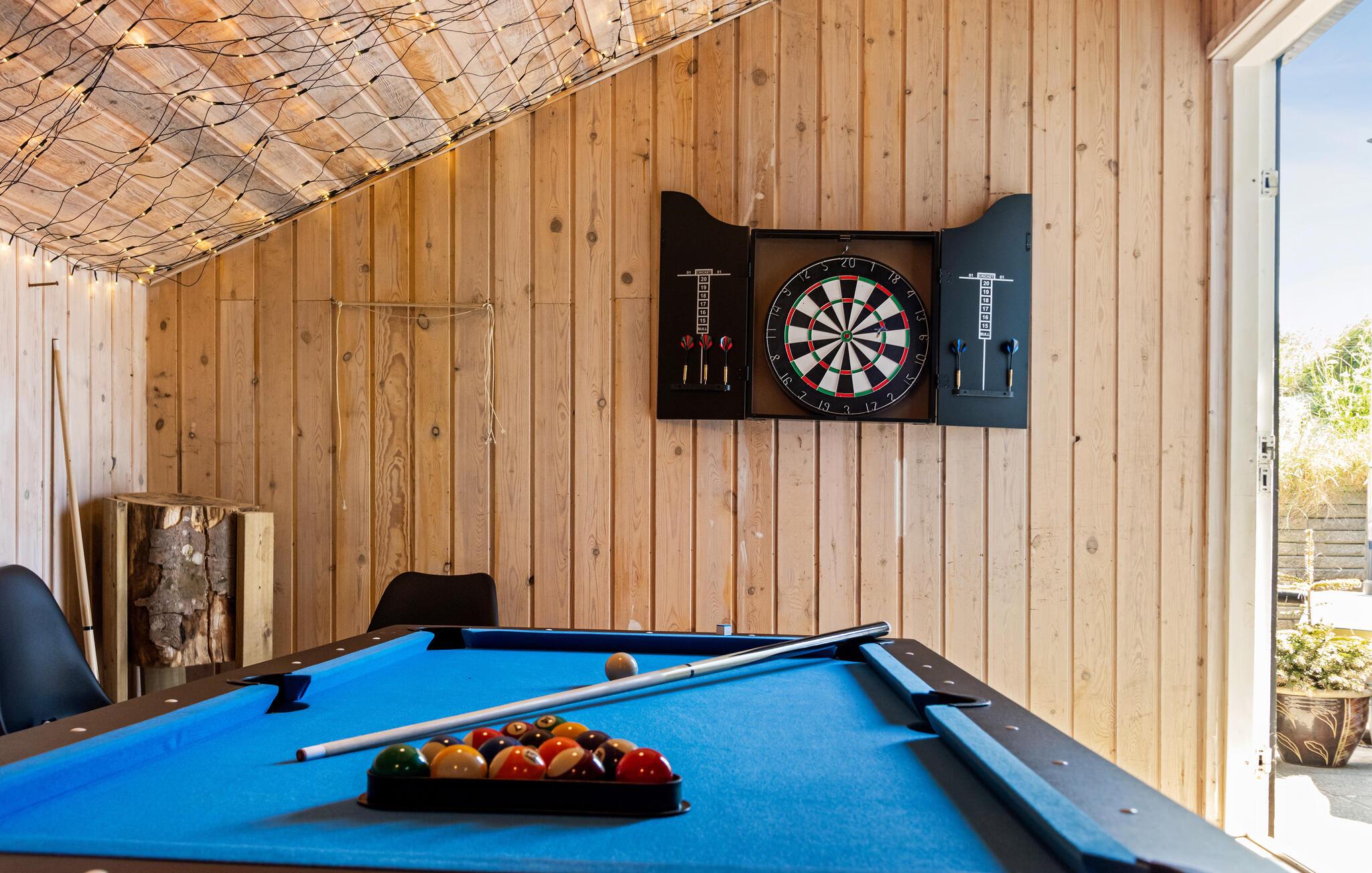 Udeområdet er mindst lige så tiltalende. Huset ligger på en stor klitgrund med en terrasse, hvor I kan nyde morgenkaffen og alle dagens måltider, når vejret er godt. Udfordr hinanden til et slag dart, pool eller bordtennis i aktivitetsrummet, inden I tænder op i grillen hen under aftenen. Og måske I skal forkæle jer selv med en aftentur i saunaen eller vildmarksbadet under stjernerne?