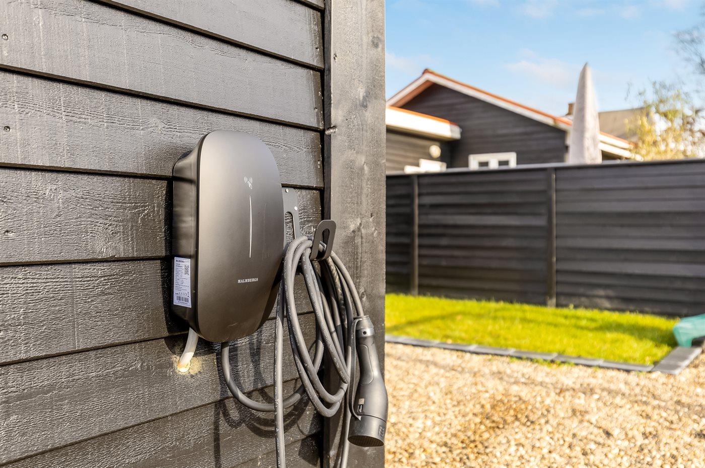 Ferieboligen er beliggende på en 750 m² stor naturgrund. Der er 50 m til havet. Nærmeste forretning er beliggende i en afstand af 5000 m. Til ferieboligen hører åbent terrasseareal. Gynge. Rutchebane. Grill til rådighed. Der er installeret stik til opladning af elbil. Type 2 stik. Parkering ved ferieboligen.