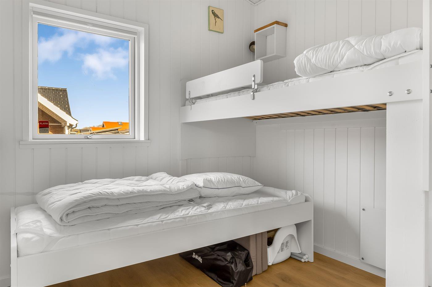 Der er i alt 3 soveværelser. Sovepladserne fordeler sig på: 4 sovepladser i enkeltsenge. 2 sovepladser i køjeseng. Derudover er der 1 stk. barneseng.
