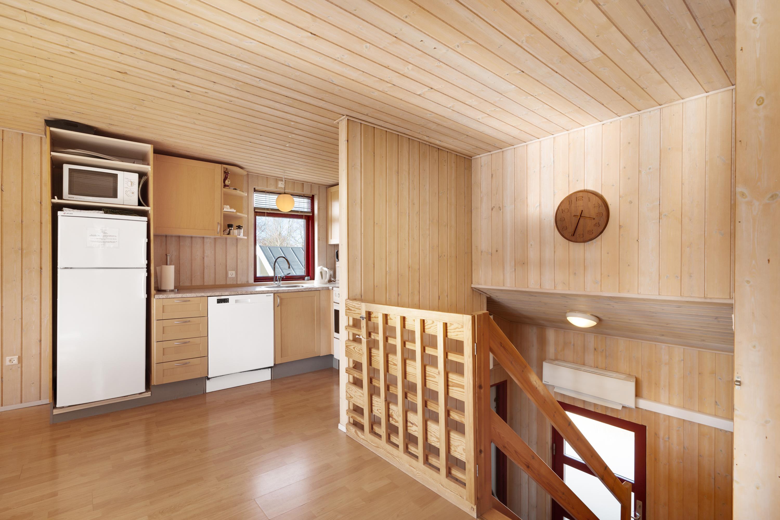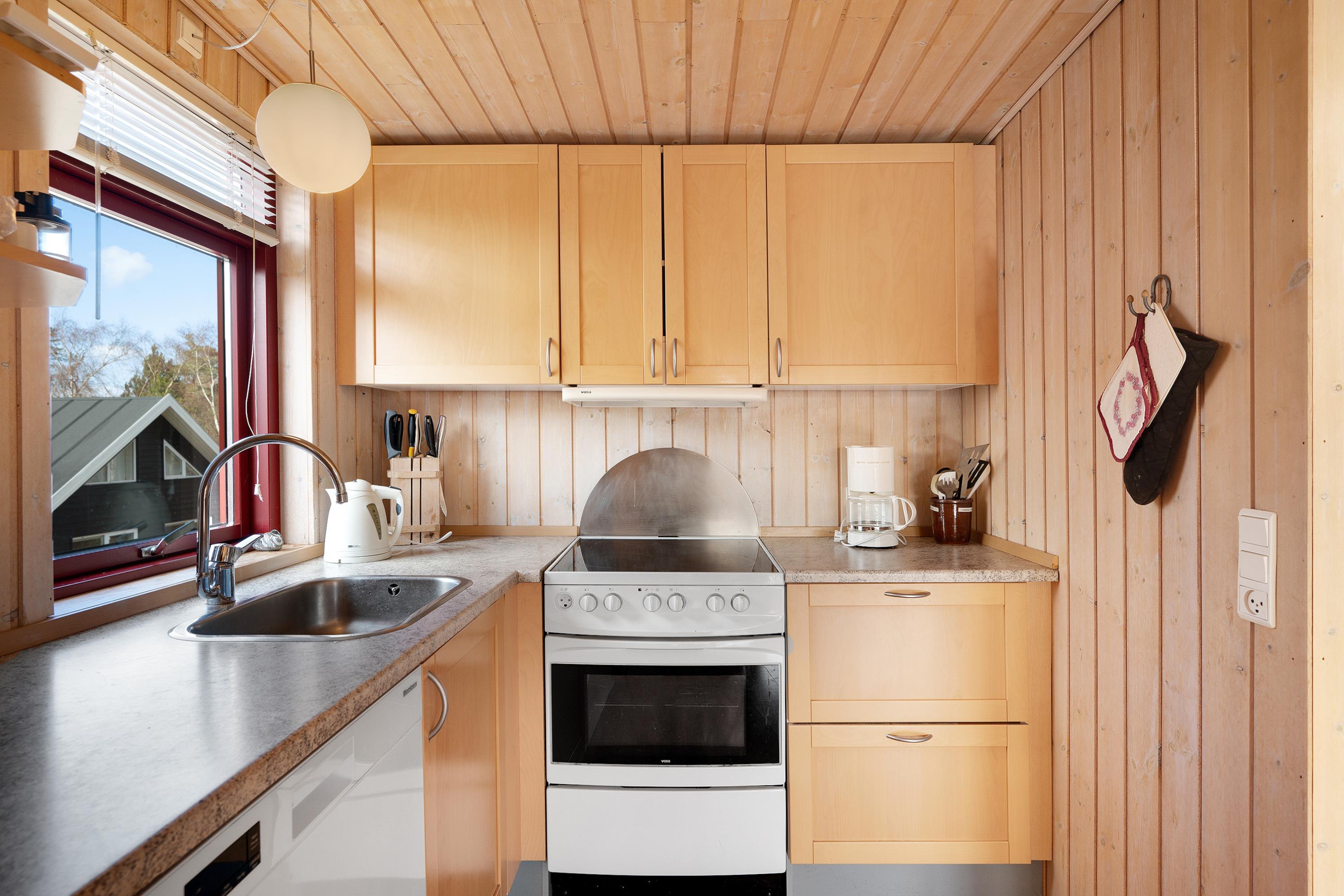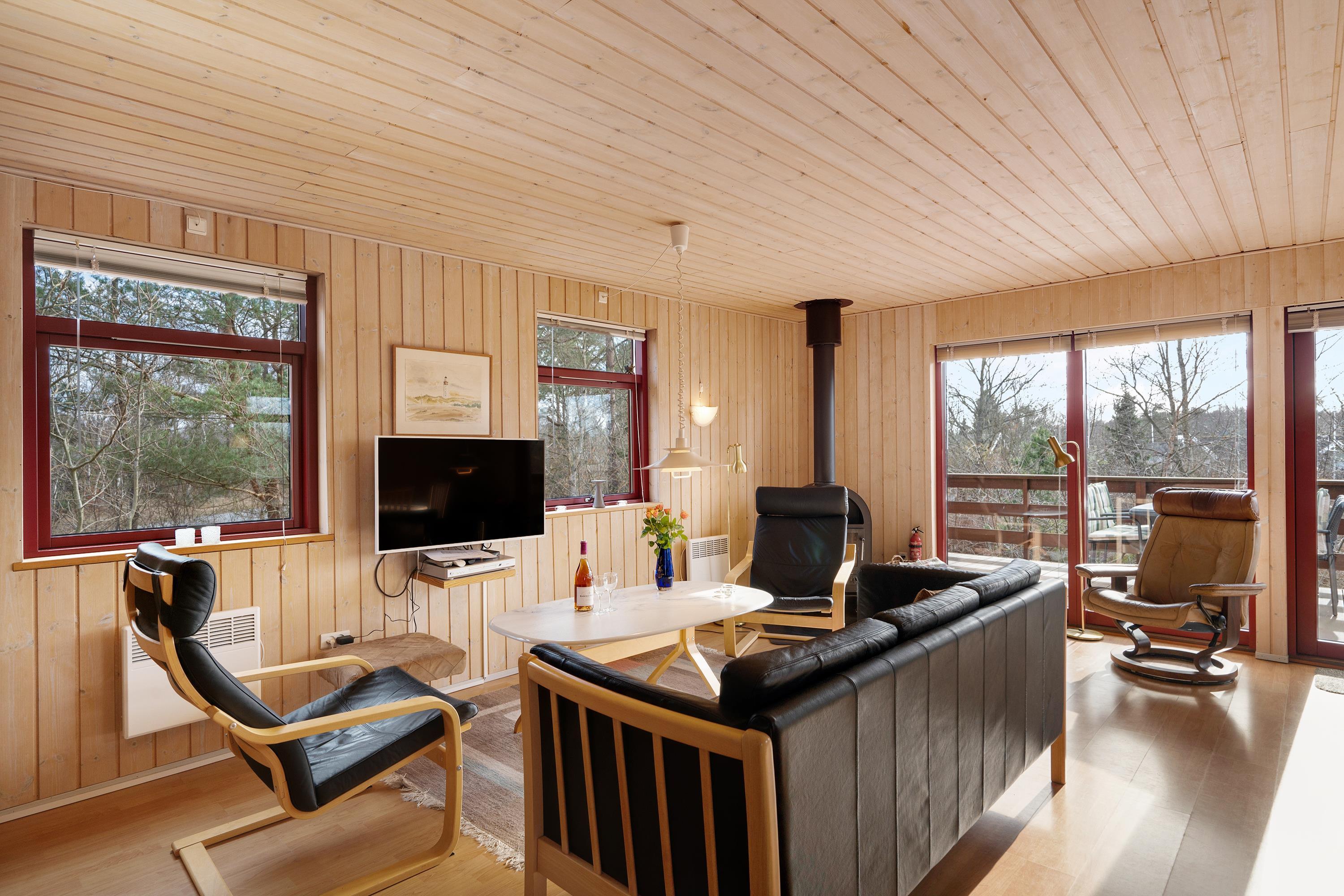 Kun 150 meter fra en af Jyllands bedste badestrande, finder man dette hyggelige feriehus i to plan. Soveafdelingen finder man i underetagen og her finder man 3 gode soveværelser; heraf to værelser med dobbeltsenge og et værelse med en dobbeltseng og en køjeseng. To gode badeværelser, hvoraf det ene indeholder et spabad samt adgang til sauna. Her er der også adgang til både vaskemaskine og tørretumbler. Fra entreen fører der en trappe op til 1. salen hvor man finder husets lyse stue med brændeovn og varmepumpe og hvorfra der er udgang til hyggelig terrasse med havemøbler. I forbindelse med stuen finder man køkkenafdelingen med b.la. opvaskemaskine. Der er både danske (inkl. TV2), tyske, norske og svenske kanaler i huset samt internet.