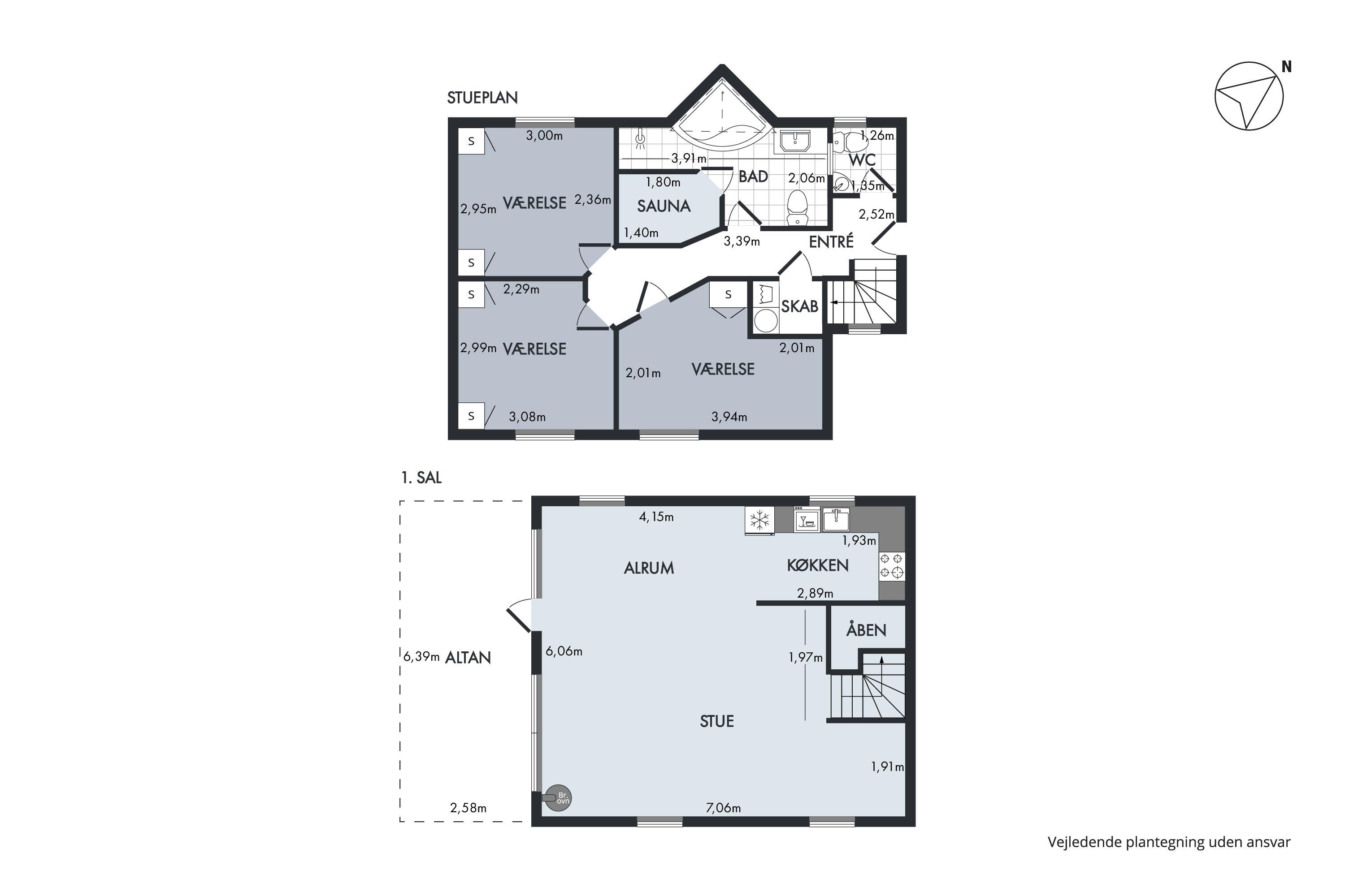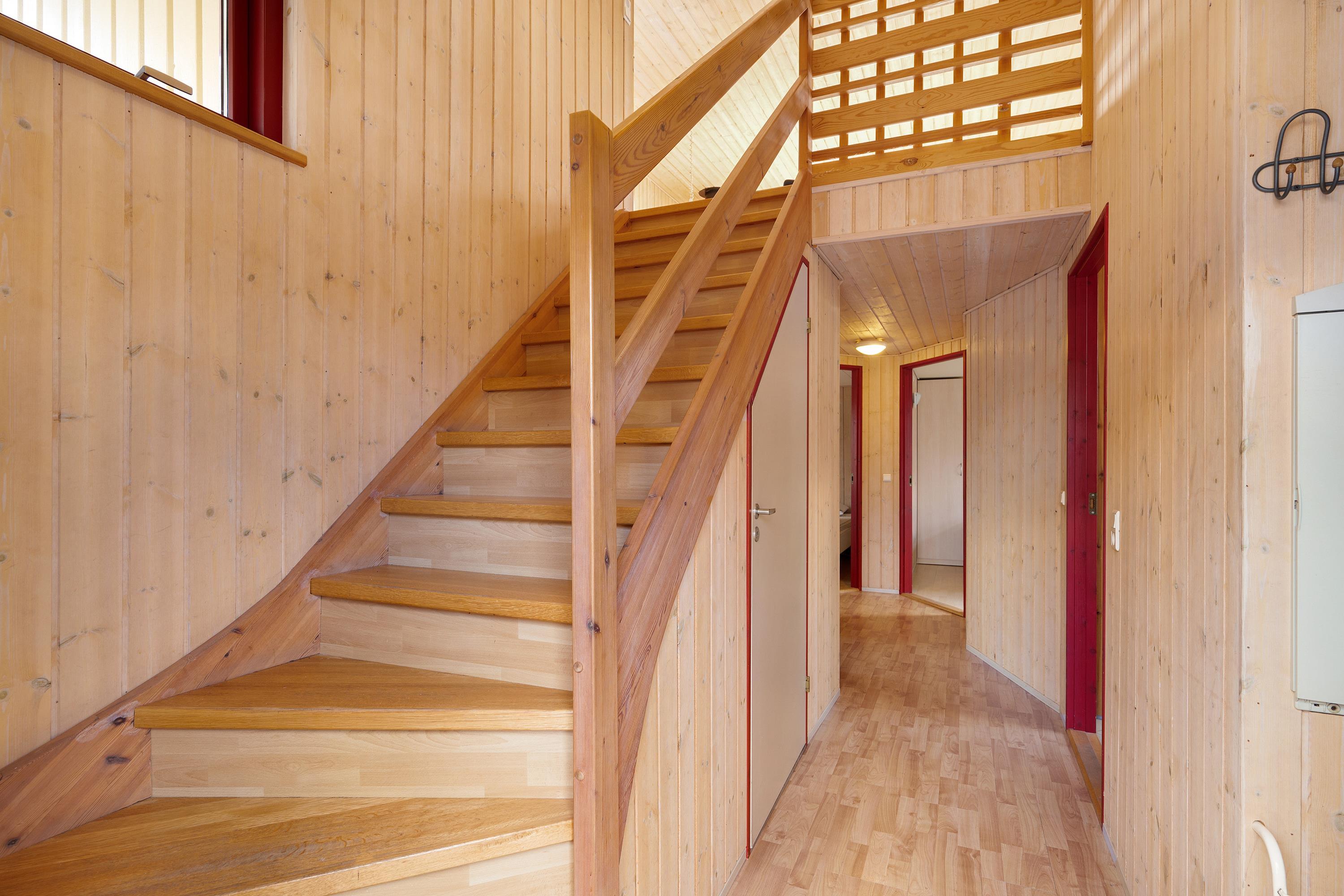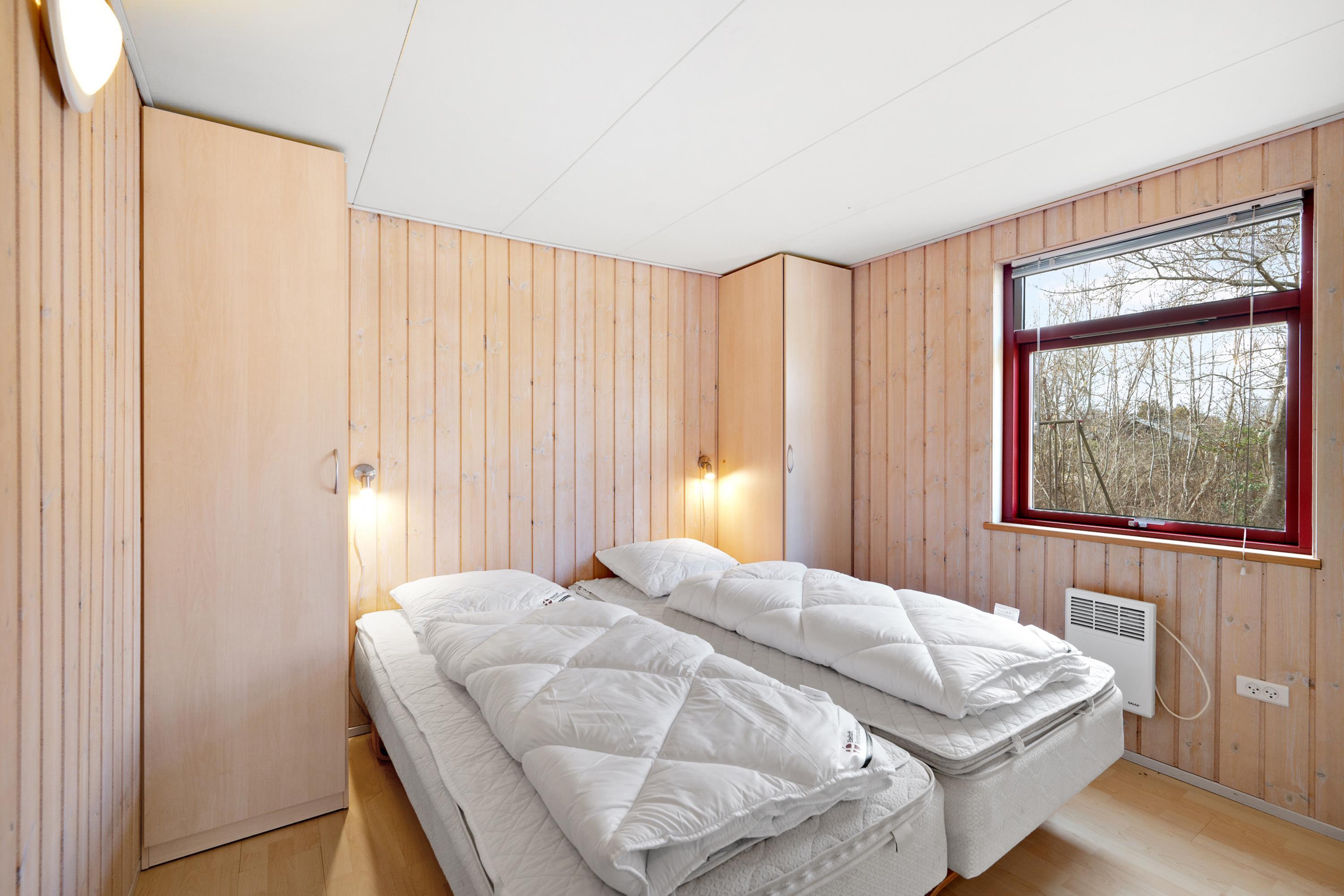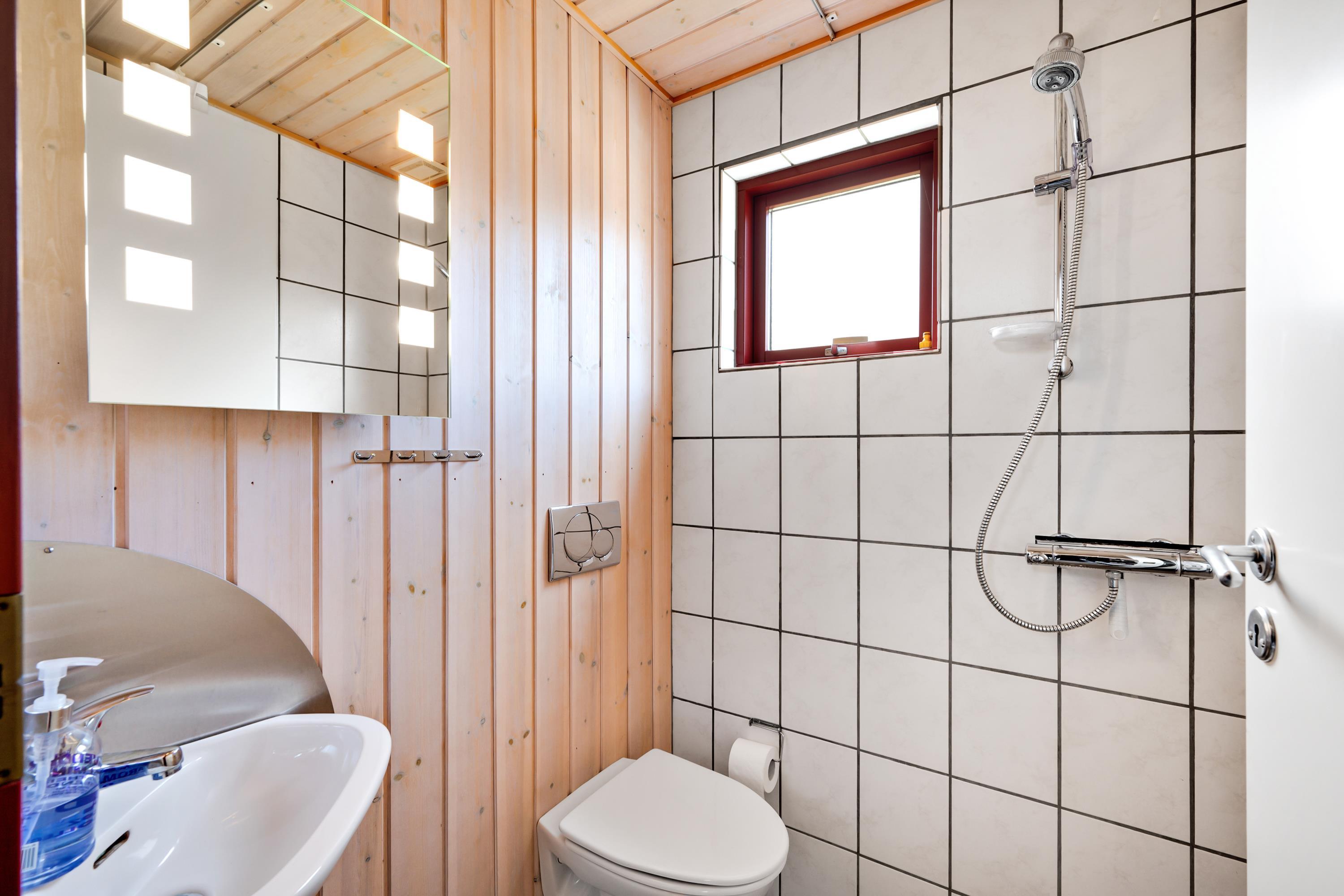 Kun 150 meter fra en af Jyllands bedste badestrande, finder man dette hyggelige feriehus i to plan. Soveafdelingen finder man i underetagen og her finder man 3 gode soveværelser; heraf to værelser med dobbeltsenge og et værelse med en dobbeltseng og en køjeseng. To gode badeværelser, hvoraf det ene indeholder et spabad samt adgang til sauna. Her er der også adgang til både vaskemaskine og tørretumbler. Fra entreen fører der en trappe op til 1. salen hvor man finder husets lyse stue med brændeovn og varmepumpe og hvorfra der er udgang til hyggelig terrasse med havemøbler. I forbindelse med stuen finder man køkkenafdelingen med b.la. opvaskemaskine. Der er både danske (inkl. TV2), tyske, norske og svenske kanaler i huset samt internet.