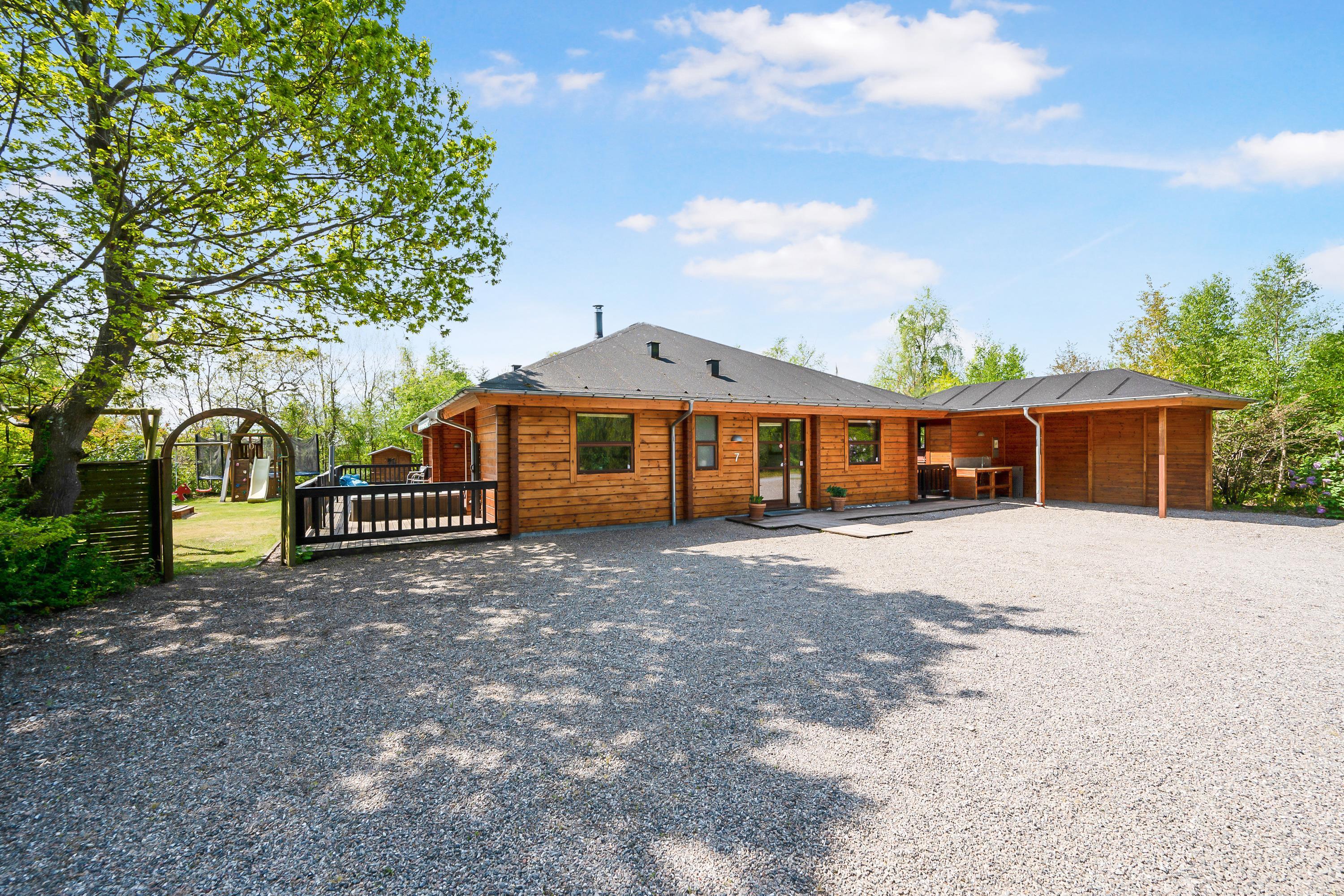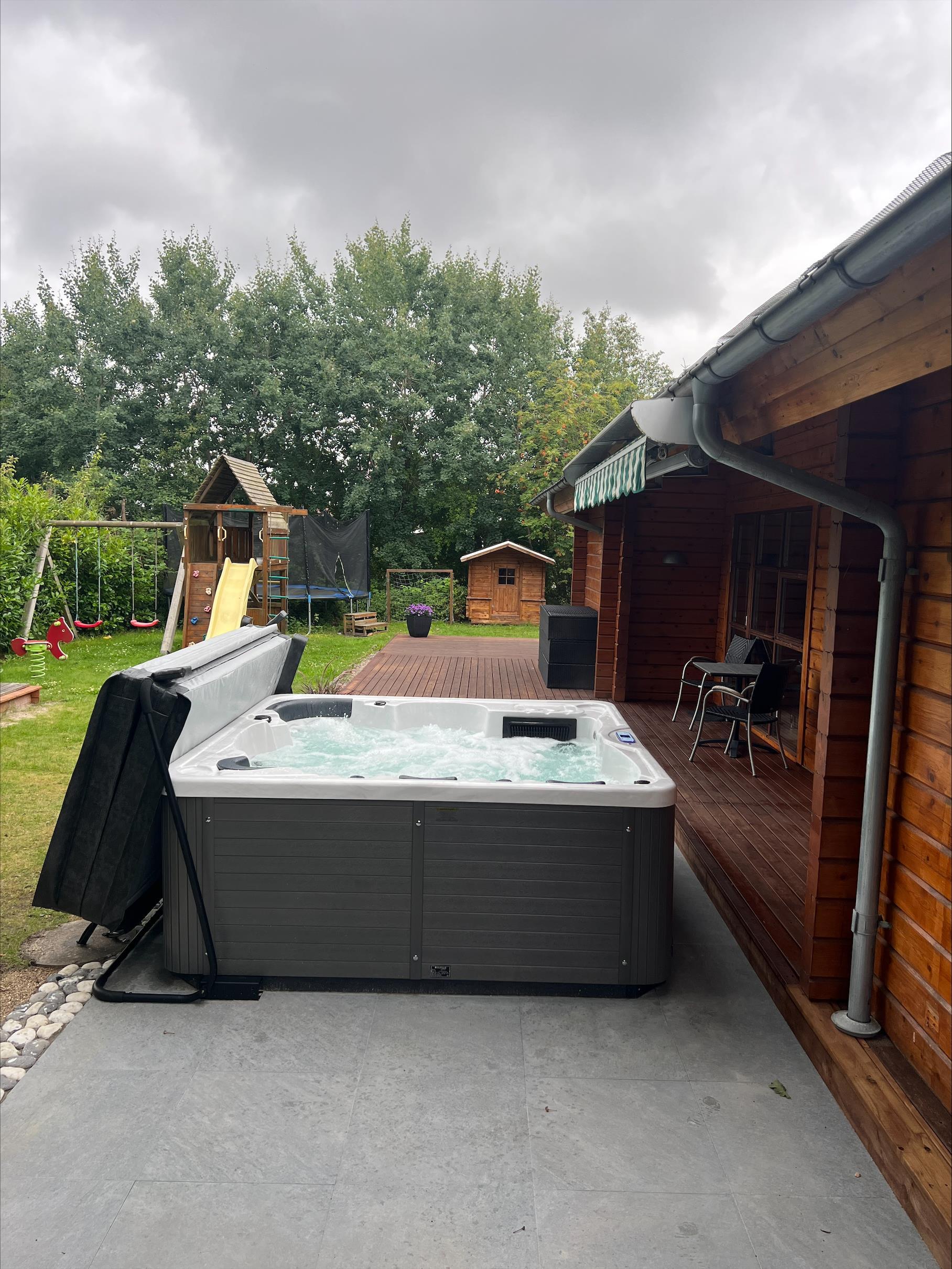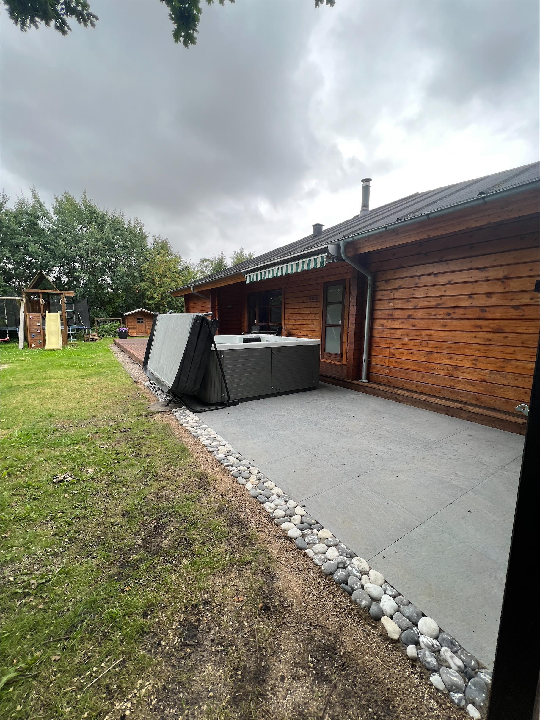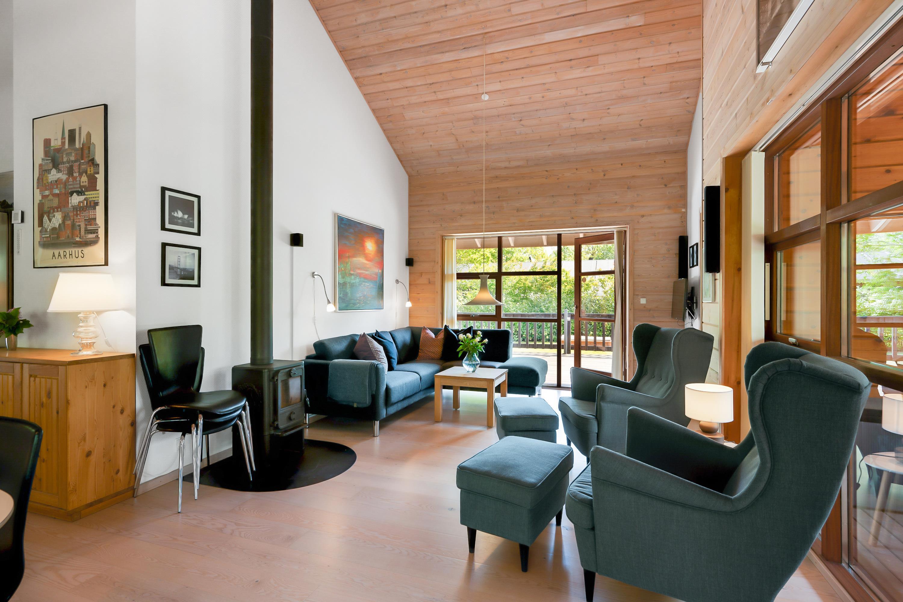 Flot feriehus nær Grenå strand med spa, sauna og børnevenlig have.