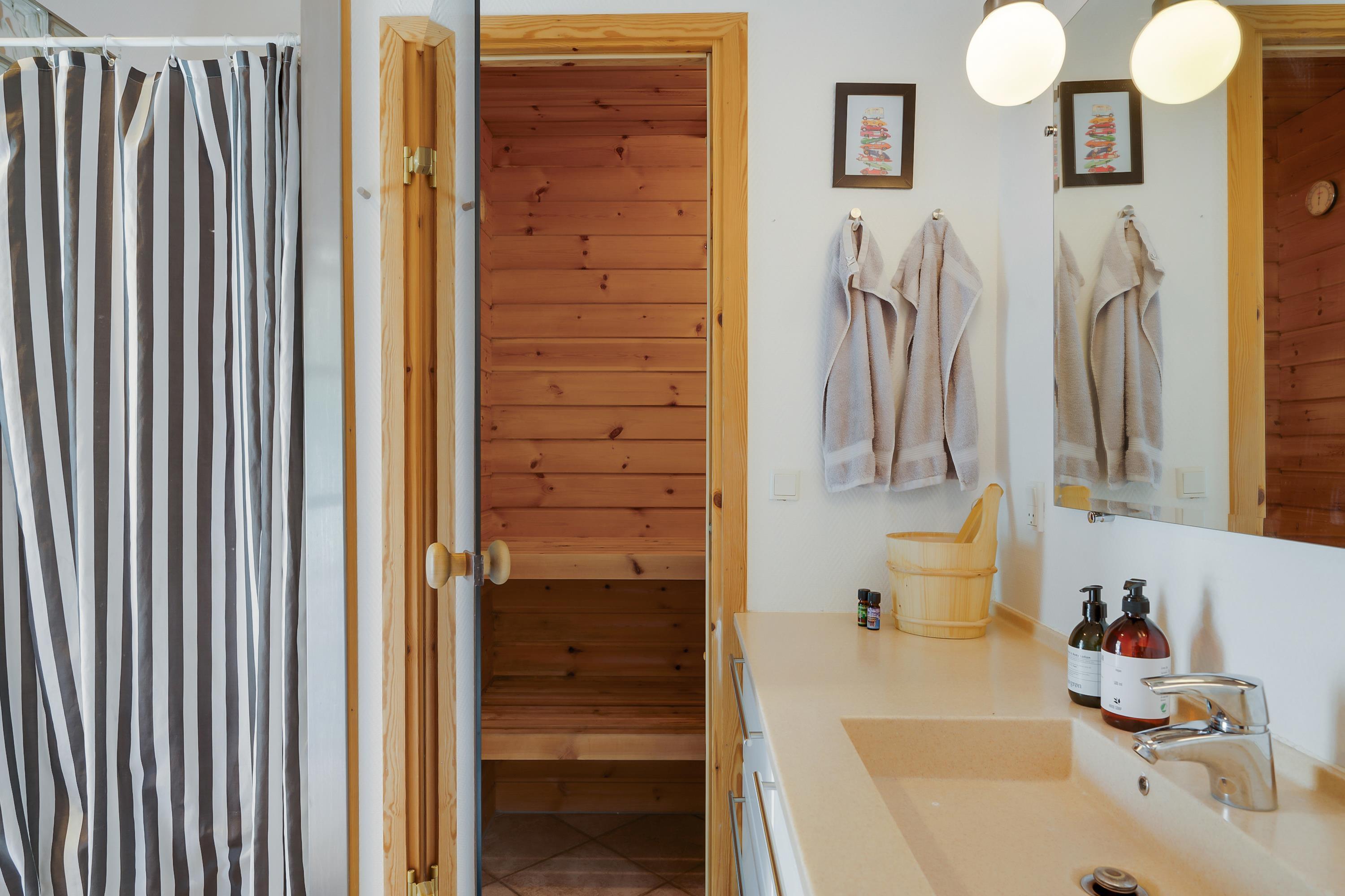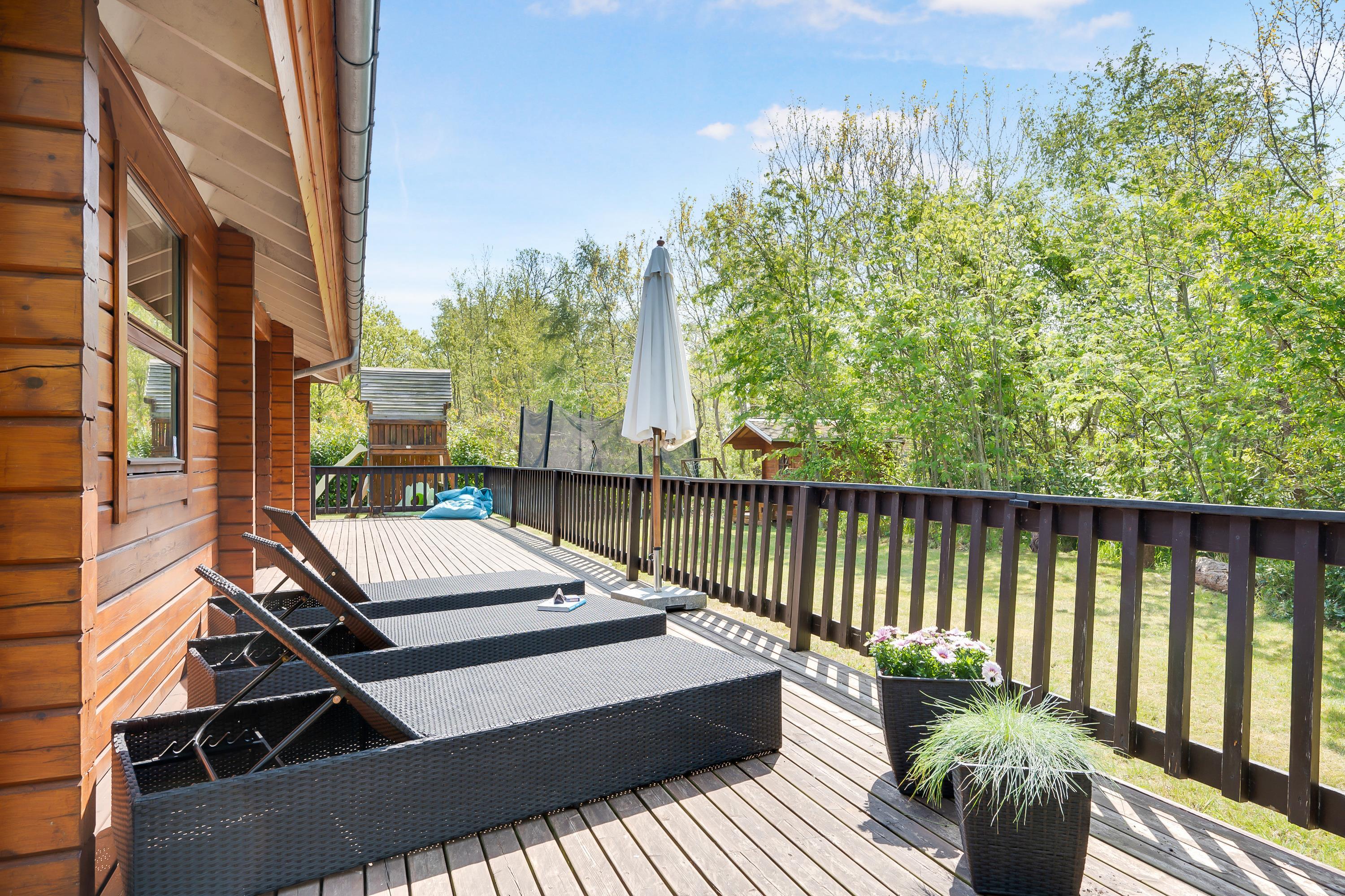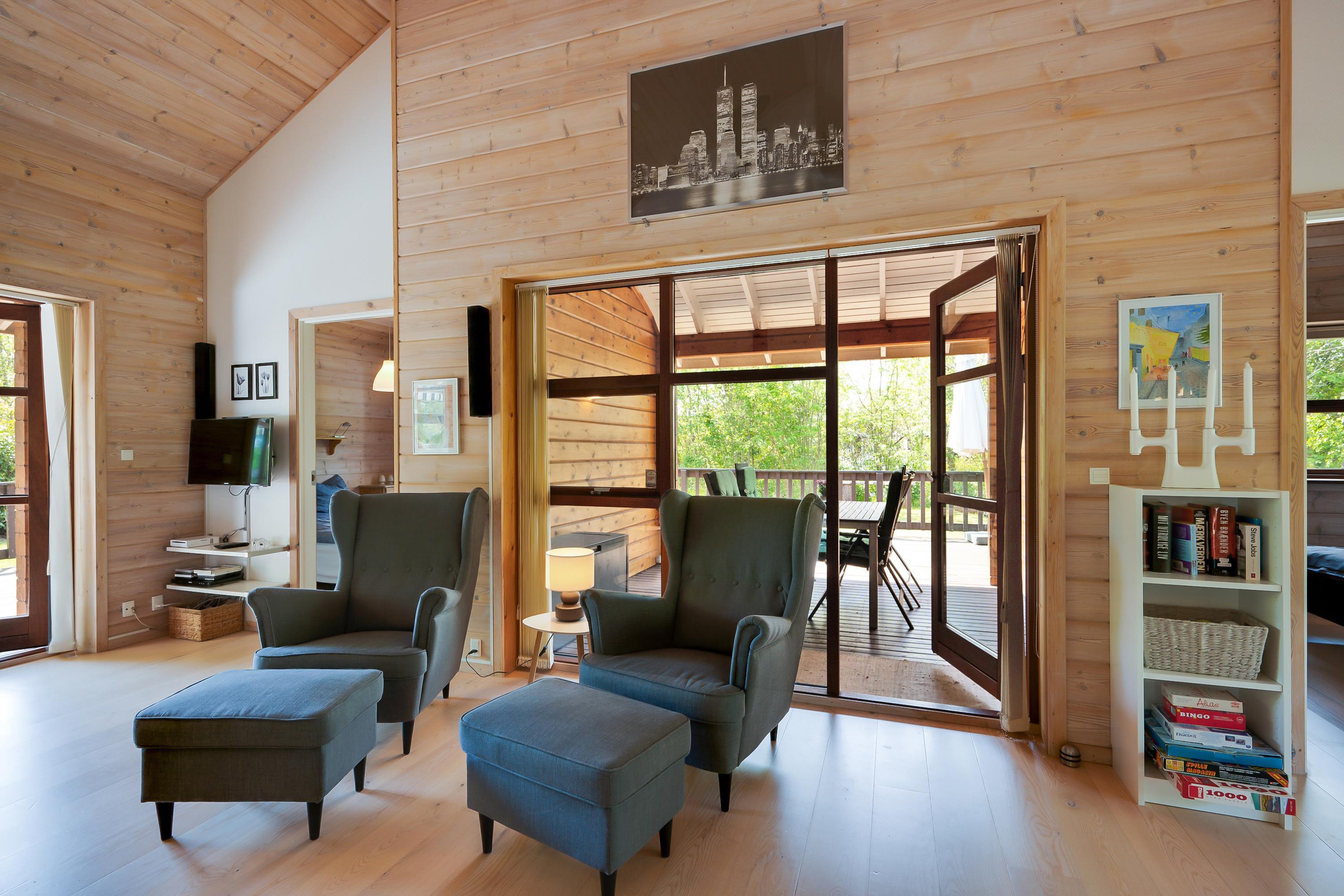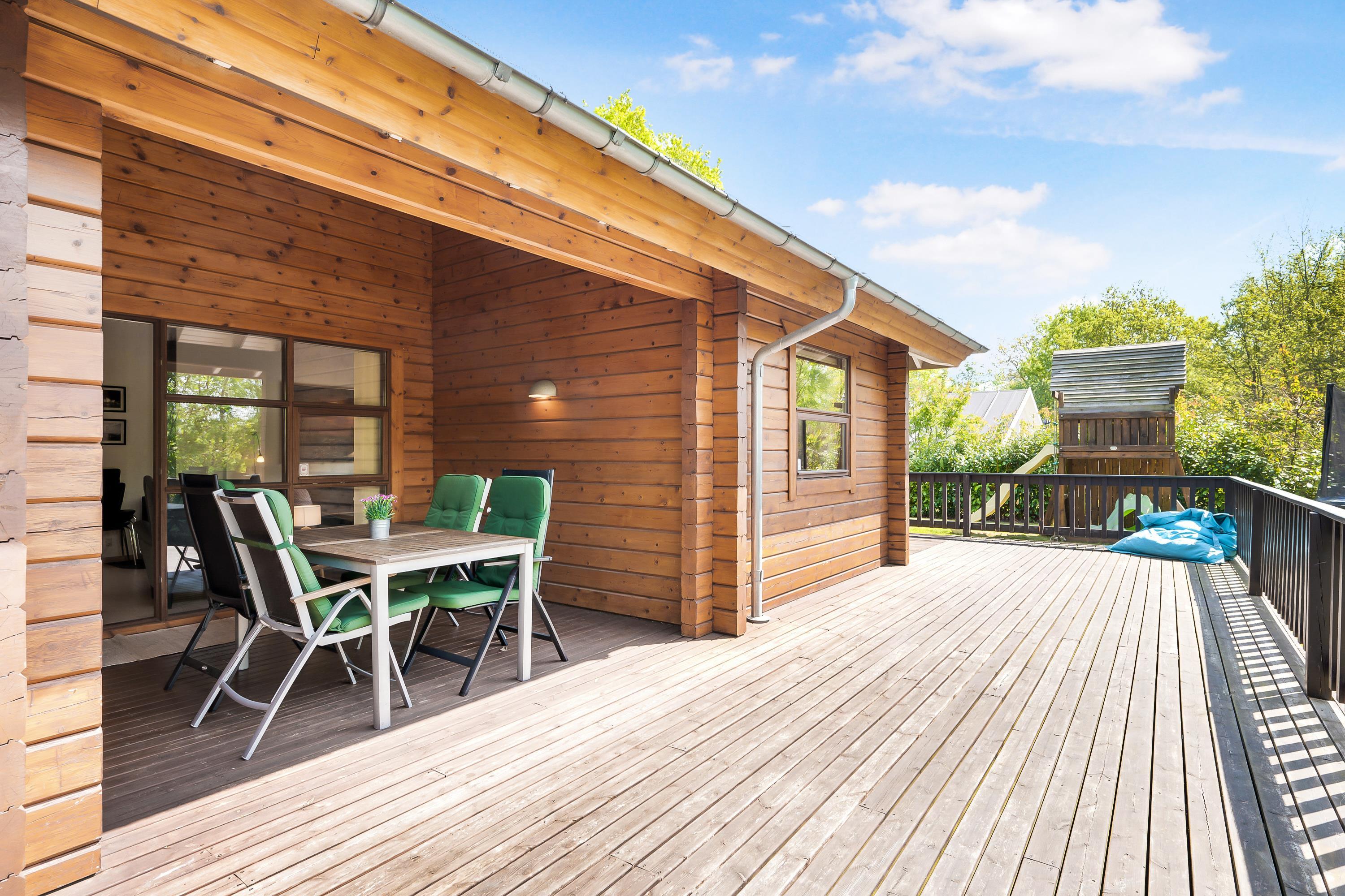 Flot feriehus nær Grenå strand med spa, sauna og børnevenlig have.