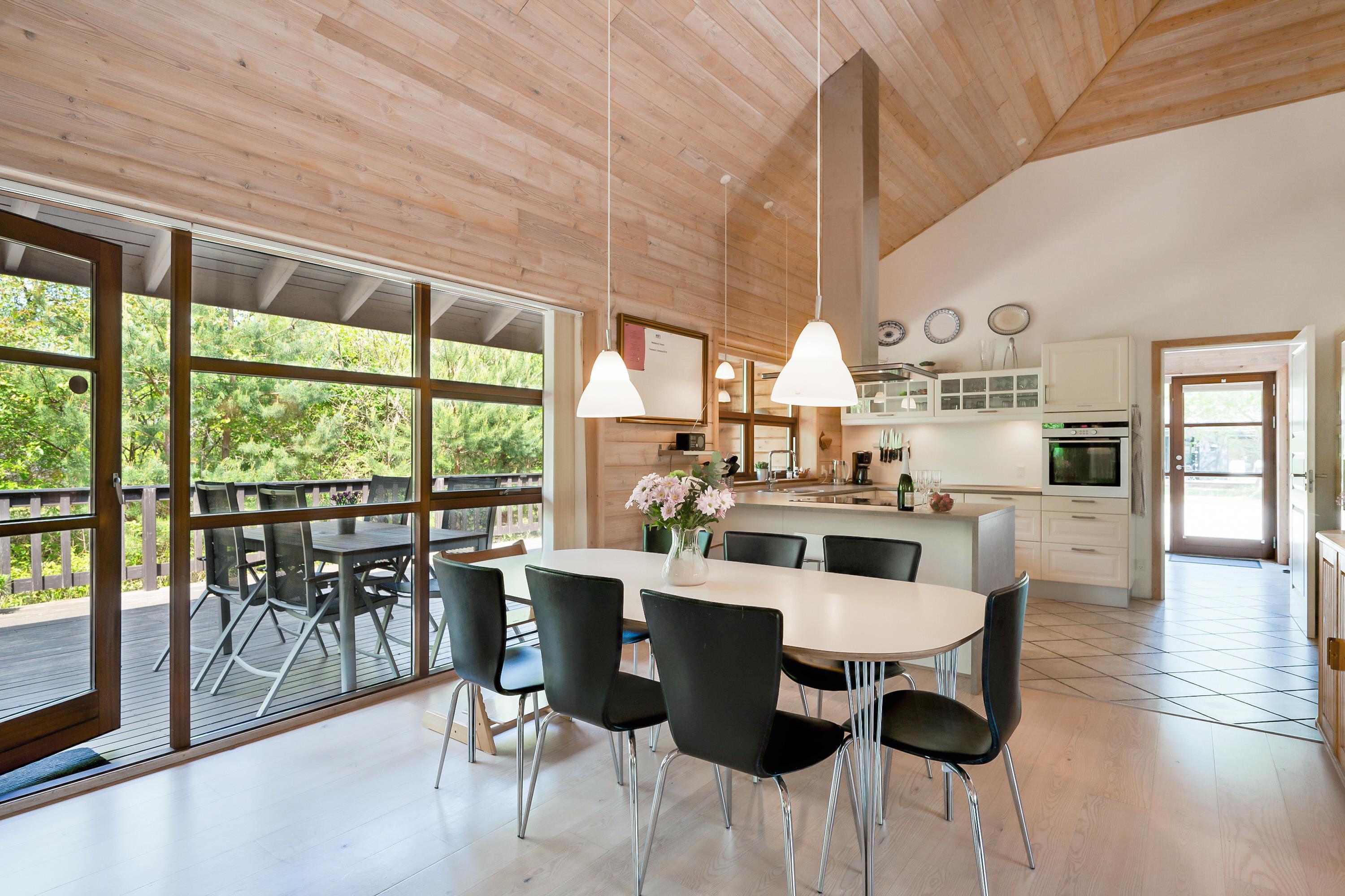 Tæt på en af Jyllands bedste badestrande, finder man dette flotte og meget velholdte feriehus, der indeholder alt hvad hjertet begærer. Flot lys og velindrettet stue, møbleret med lækre møbler og med udgang til stor skøn terrasse med gode havemøbler og grill. I forbindelse med stuen finder man det flotte køkken med b.la. opvaskemaskine og amerikansk køleskab og i forbindelse med køkkenet en skøn spiseafdeling. Huset indeholder to flotte badeværelser, hvoraf det ene er med spabad og adgang til sauna. Husets sovepladser finder man i 4 dejlige værelser; heraf tre med dobbeltsenge, samt et værelse med en enkeltseng og en køjeseng. Til de små feriegæster er der barnestol og barneseng. Huset er omkranset af skønne terrassearealer med gode havemøbler og liggestole og her finder man også en skøn jacuzzi. (BEMÆRK fra 1 nov. til 1 april kan udendørsspa IKKE benyttes) Haven er særdeles velegnet til børn: her finder man b.la. gynger, sandkasse, trampolin, legehus, rutschebane og fodboldmål. Et virkeligt skønt og gennemført hus til to familier eller en stor familie.