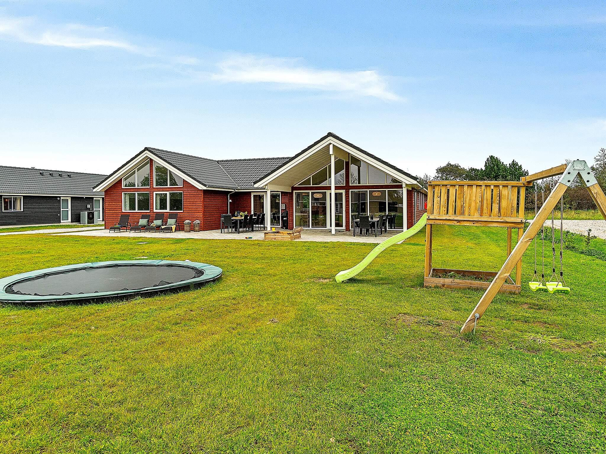 Sommerhus med swimmingpool, spabad og sauna beliggende ca. 1200 m fra vandet ved Grenå Strand. Husets poolafdeling indeholder både stor swimmingpool, vandrutschebane, svømmetræner, stort spabad og sauna med plads til 5 personer. Swimmingpoolen er på 20 m² og med rutschebane til børnene. Der er svømmetræner, så hele ugen kan I forbedre konditionen med daglige svømmetag kombineret med ren afslapning i spabadet og saunaen, som befinder sig i poolrummet. I aktivitetsrummet kan der spilles billard, bordfodbold, elektronisk dart og bordtennis. Der er flere tv i forskellige afdelinger samt PlayStation4 og blu-ray dvd-afspiller. Personligt indrettet med moderne møblering. I det gennemtænkte køkken er der bl.a stort køleskab, fryseskab, 2 komfurer, 2 ovne og 2 opvaskemaskiner, så madlavningen og den efterfølgende oprydning går som en leg. Spise/opholdsrum er smagfuldt indrettet med stereoanlæg med cd-afspiller, fladskærms-tv, dvd-afspiller, 2 stk høj barnestole, sofaafdelingog brændeovn. Den knitrende ild frabrændeovnen kan nydes indendørs til samvær. Husets 7 soveværelser har gode boksmadrasser, og derudover er der en stor og rummelig sovehems med 4 madrasser samt en aktivitets/legehems. Der er også 2 barnesenge. Huset er yderst rummeligt og veldimensioneret og bygget op omkring to separate soveafdelinger. Hver afdeling har et badeværelse, og der er et ekstra badeværelse i forbindelse med poolafdelingen. I alt tre badeværelser, der selvfølgelig alle har gulvvarme. Huset opvarmes i øvrigt med el-varme og energibesparende varmepumpe. I haven kan børnene hygge sig med fodboldmål, gynge og sandkasse samt en stor trampolin (benyttes på eget ansvar/forsikring). På den store terrasse kan I nyde solen og have hyggelige grillaftener. Afregning af forbrug,og depositum betales kontant på stedet til viceværten.Obs! Vær opmærksom på, at billederne er modelfotos. Udlejes ikke til ungdomsgrupper. Af sikkerhedsmæssige årsager har husejer på dette sommerhus opsat udendørs overvågningskameraer. Disse anvendes kun udendørs og vil kun blive aktiveret, hvis indbrudsalarmen går i gang. Der er 2 kulgrill på terrassen og 4 liggestole. Chromecast er installeret, så det er nemt for gæsterne at streame, der er installeret en wifi-forlænger for at skabe det bedst mulige internet i hele huset. kæledyr er ikke tilladt, og det udlejes ikke til ungdomsgrupper). at rygning indenfor ikke er tilladt, men at der er installeret to udvendige bokse til cigaretskodder. Trampolin« og ›lille legetårn med gynge‹ og ›sandkasse‹ er der i huset. Stor terrasse med plads til 18 personer«, og der er 2 kulgriller og 4 liggestole.