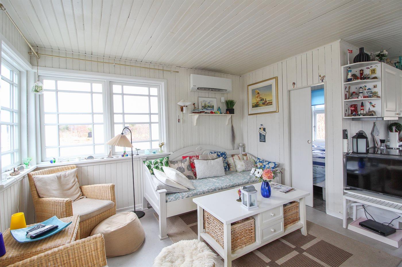I anden række til vandet ligger dette hyggelige og charmerende sommerhus på en meget lille grund tæt på skøn børnevenlig badestrand. Bemærk: 1 soveplads befinder sig i opholdsstuen.