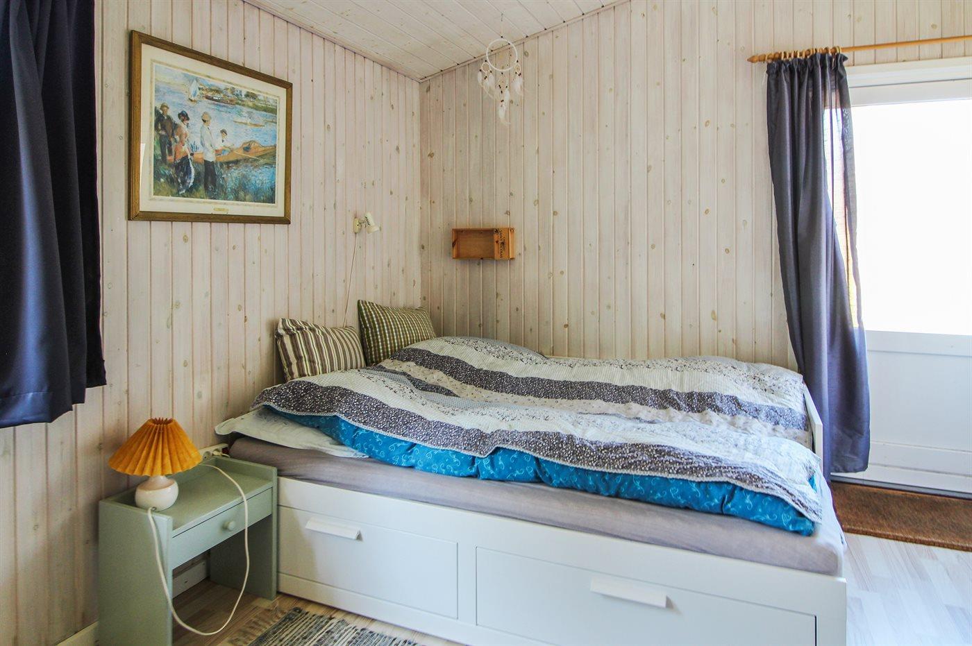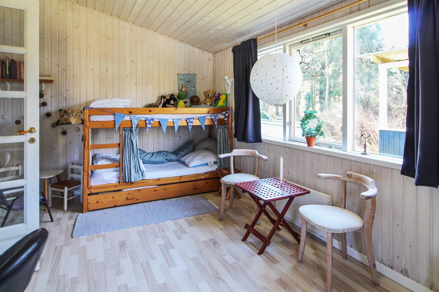 Der er i alt 3 soveværelser. Sovepladserne fordeler sig på: 4 sovepladser i dobbeltsenge. 2 sovepladser i køjeseng. 2 sovepladser i sovesofa (dobbelt). 2 af disse sovepladser befinder sig i et anneks. Derudover er der 1 stk. barneseng.