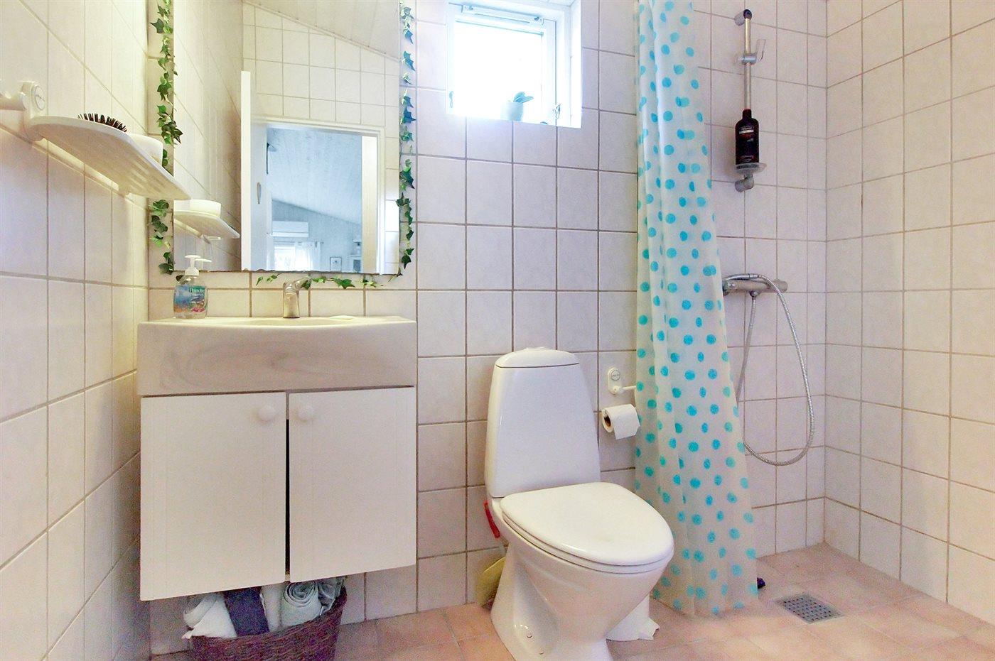 Der er 1 badeværelse med bruser og 1 toilet.. Der er gulvvarme på 1 badeværelse.