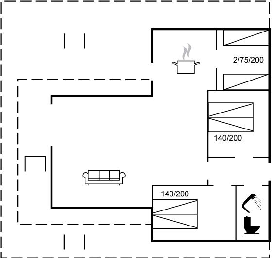 Indretningen omfatter 3 soveværelser med 4 sovepladser i dobbeltsenge og 2 i enkeltsenge. Badeværelset har bruseniche og toilet. Af underholdning finder du TV med internet, Chromecast, radio, Bluetooth højtaler og trådløst internet.