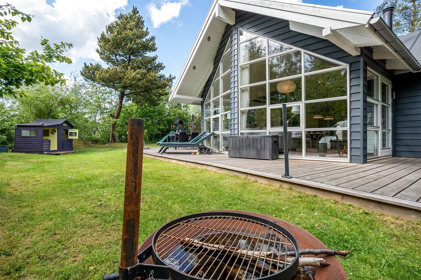 Lækkert moderniseret sommerhus nær Grenaa Strand med stor terrasse og sauna til en afslappende ferie.