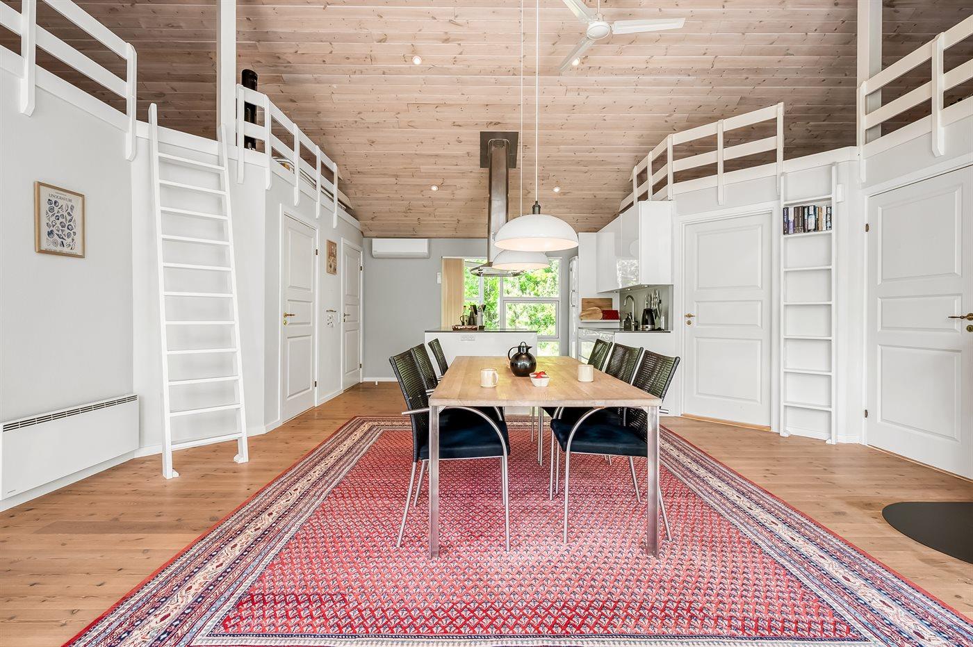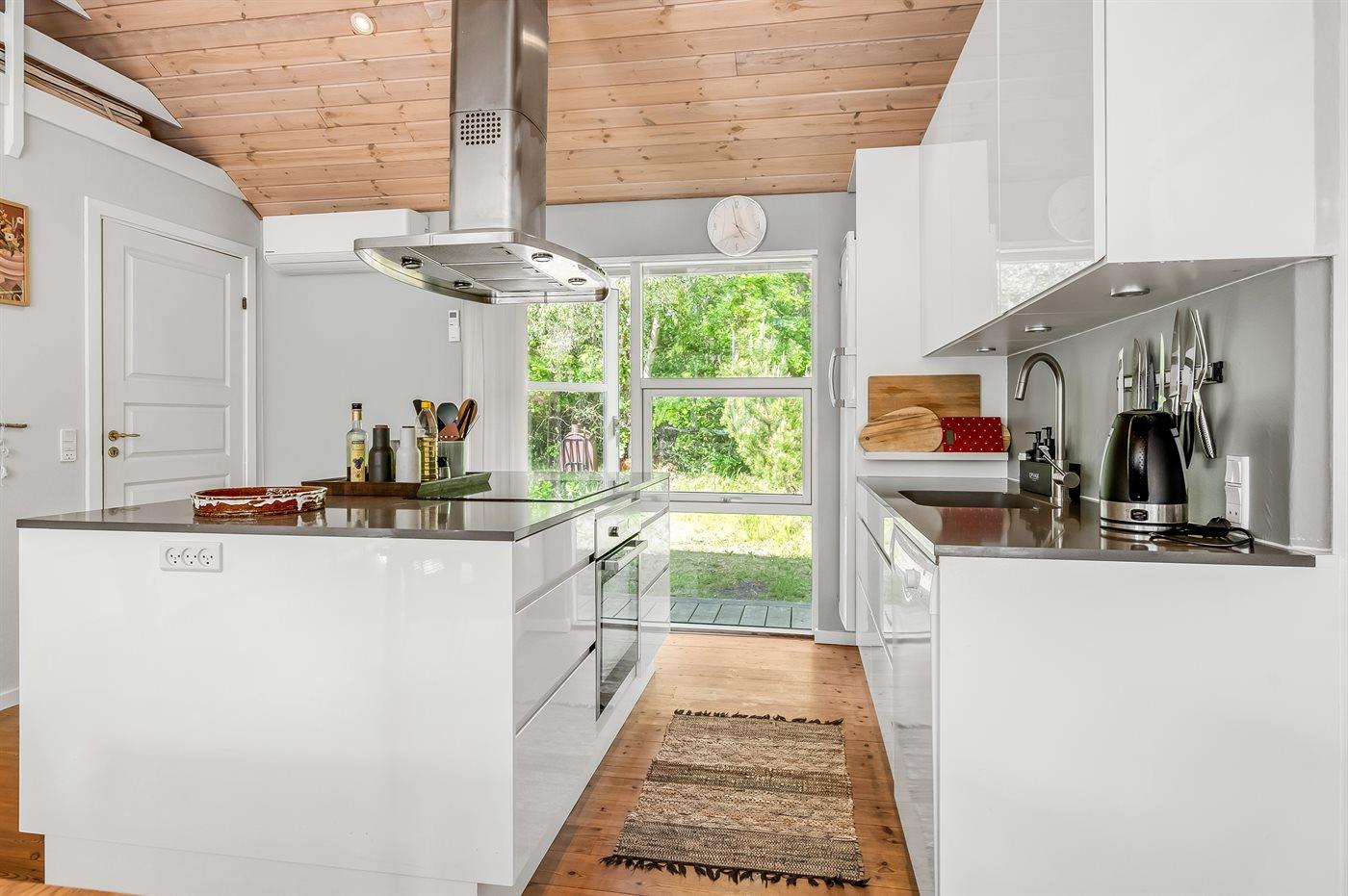 Køkkenet er udstyret med 1 køleskab. Der er 4 induktionskogeplader, varmluftovn, mikrobølgeovn samt opvaskemaskine.