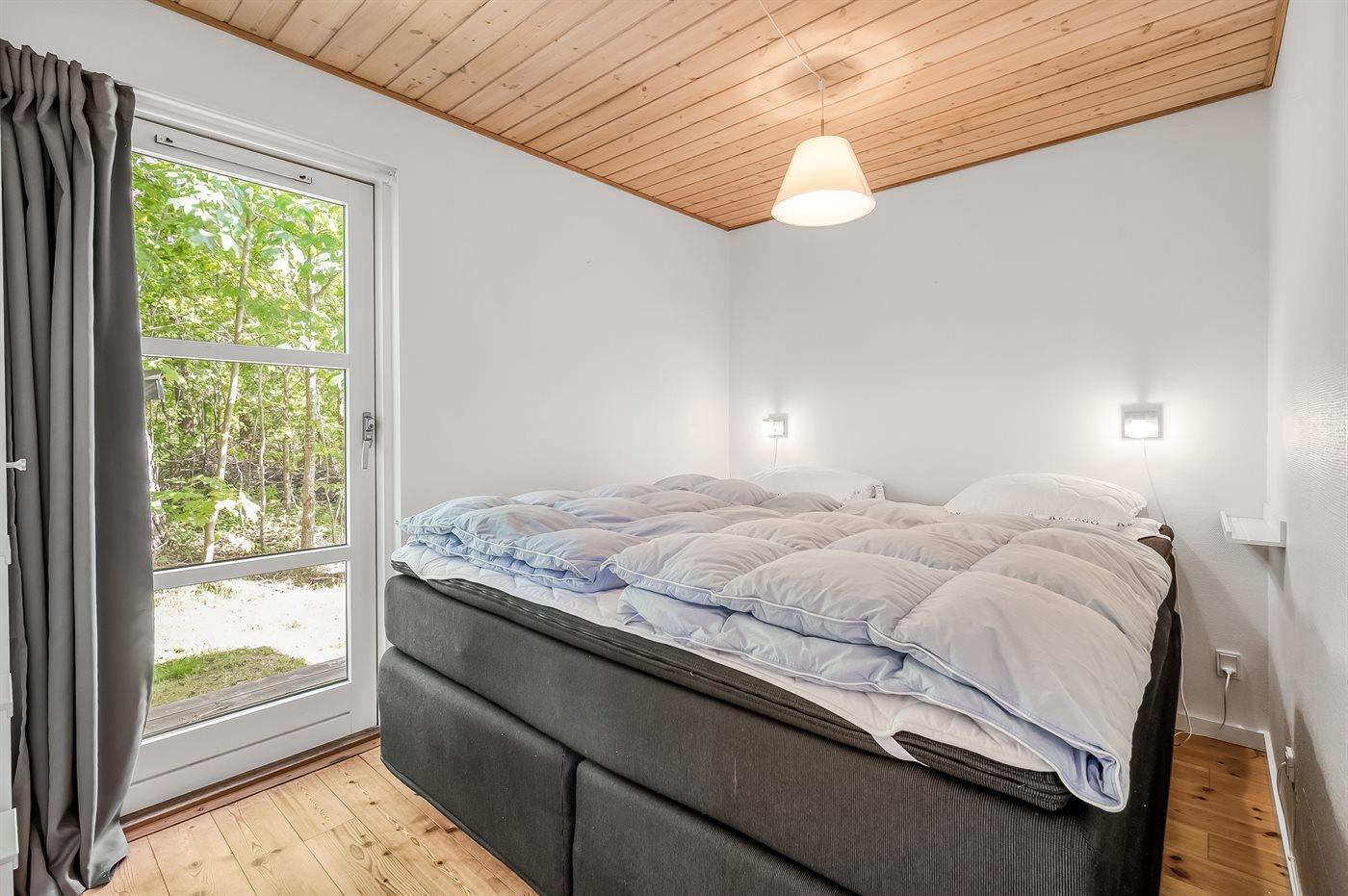 Der er i alt 3 soveværelser. Sovepladserne fordeler sig på: 6 sovepladser i dobbeltsenge. 2 sovepladser på madrasser. 2 af disse sovepladser befinder sig på husets hems. Derudover er der 1 stk. barneseng.