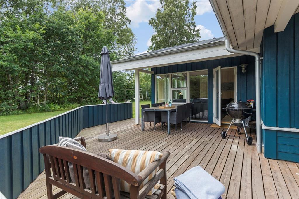 Nyd livet udenfor Træd ud ad døren og bliv mødt af en plan grund omgivet af smukt opvokset beplantning, der giver både privatliv og en følelse af naturens nærhed. De dejlige terrasser, som omkranser huset, indbyder til lange, afslappende dage under åben himmel. Her kan I nyde morgenkaffen, grille aftensmaden eller bare dase i solen med en god bog. Blot 700 meter fra huset ligger en af Danmarks bedste badestrande, hvor det Blå Flag vajer som et tegn på rent vand og gode faciliteter. og her er livreddertårs om sommeren. Her kan I tilbringe dagen med at bade, bygge sandslotte eller bare slentre langs vandkanten og nyde lyden af bølgerne. Når sulten melder sig, behøver I ikke gå langt – en hyggelig restaurant ligger tæt på. Kommer du på en årstid, hvor havet er for koldt, så ligger Grenå svømmehal ca. 1,5 km fra huset.