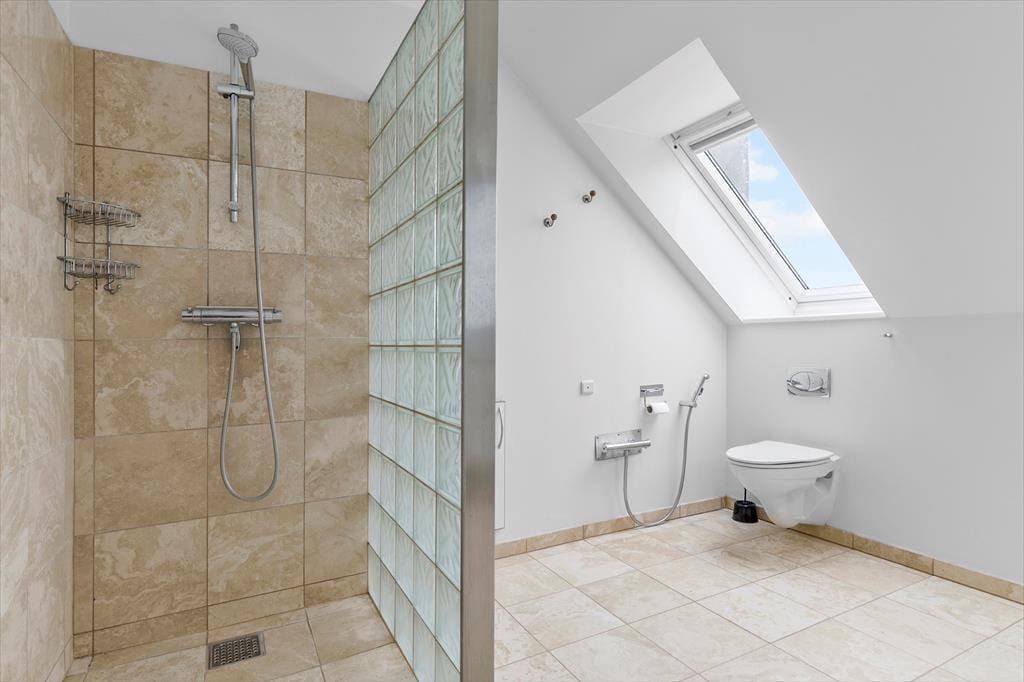 Anden sal er med hyggelige stråvægge og byder på endnu et badeværelse, der er stort, en hyggelig tv-stue og to ekstra værelser. Det ene værelse er adskilt fra stuen af en mur uden dør – ideelt til dig, der gerne vil være en del af fællesskabet og alligevel have sit eget sted at trække sig tilbage.