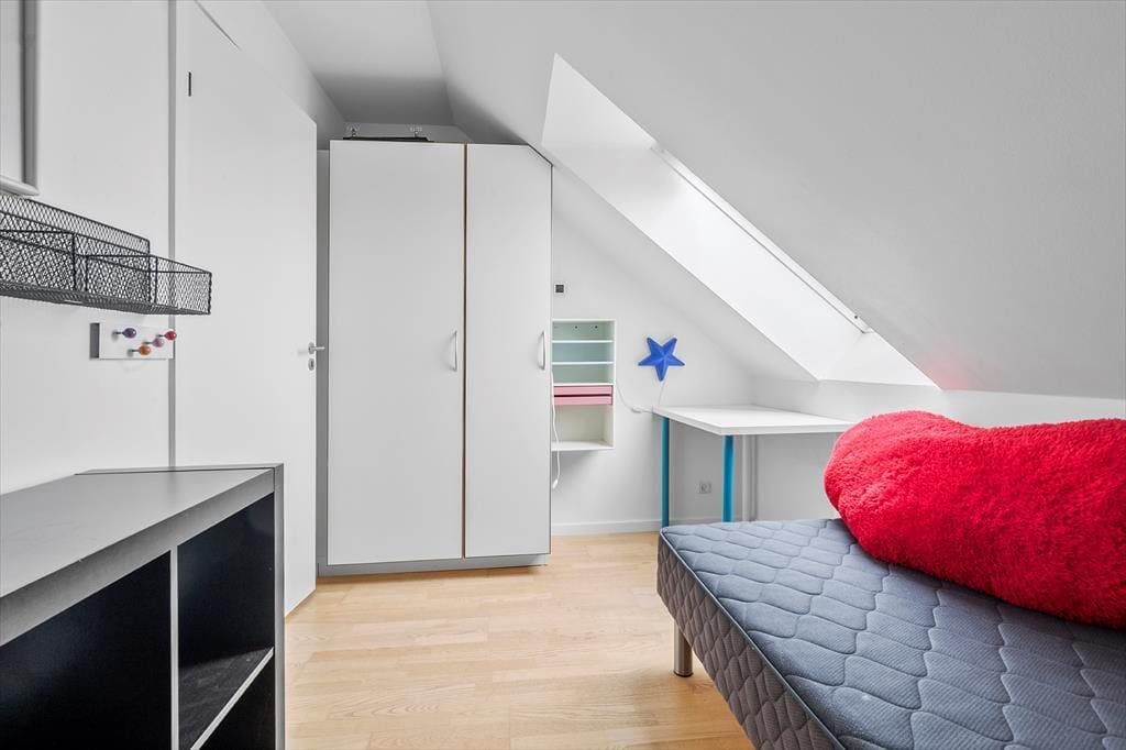 Du kommer ind i huset i entreen i stueplan, hvor du også finder tre gode værelser – et af dem med udgang til en lille terrasse og adgang til en lille fælles have. Herudover et lyst badeværelse med vaskesøjle.