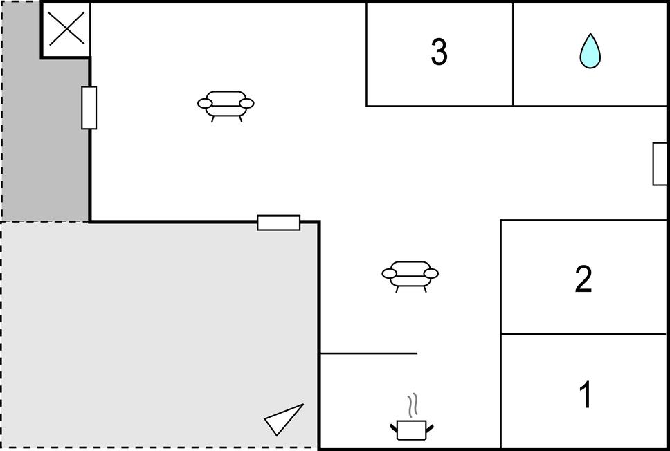Soveværelse (nr. 1) - 2 Sovepladser. (Dobbeltseng(e)). 1 Soveplads. (Etageseng(e)).