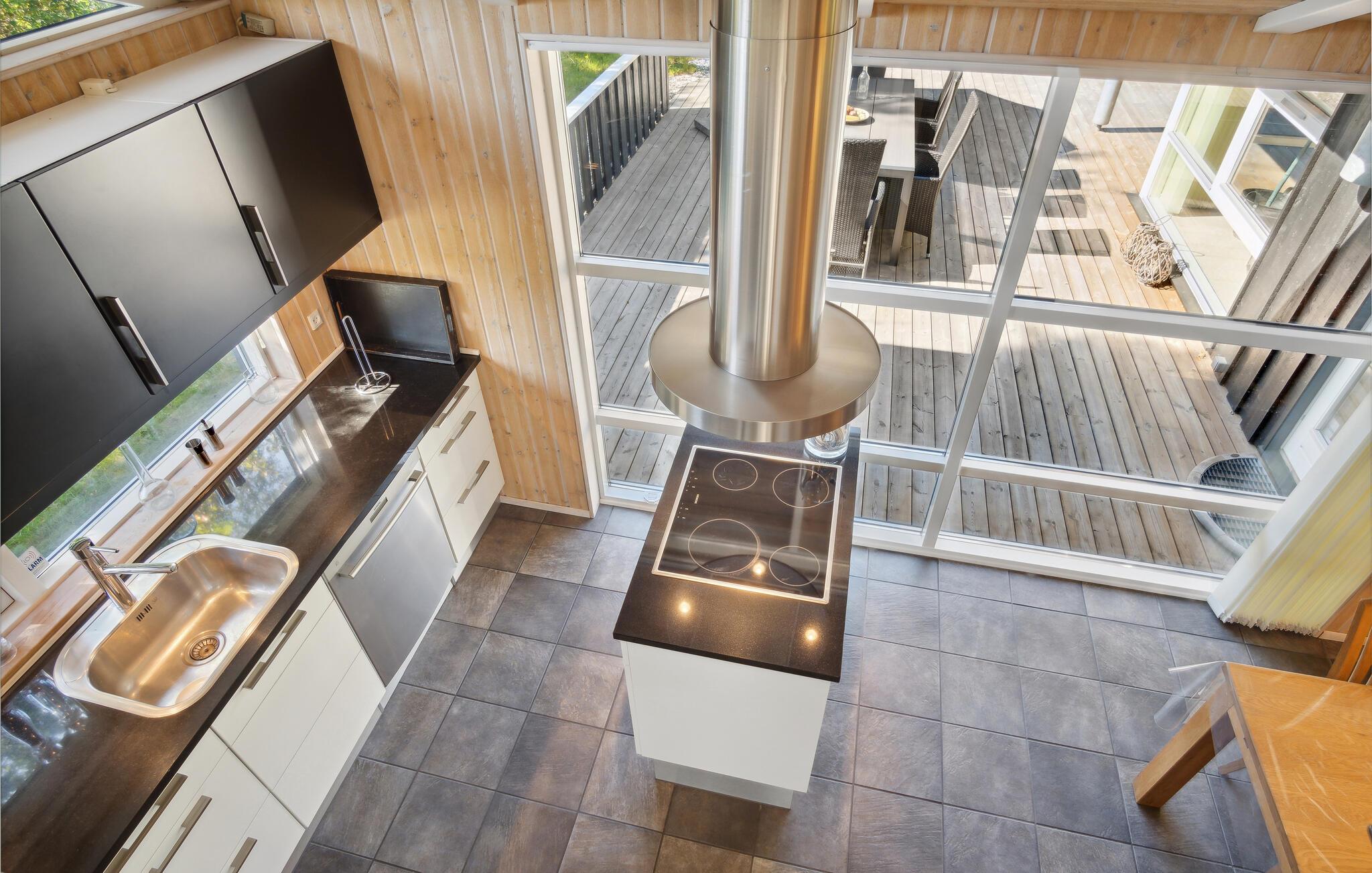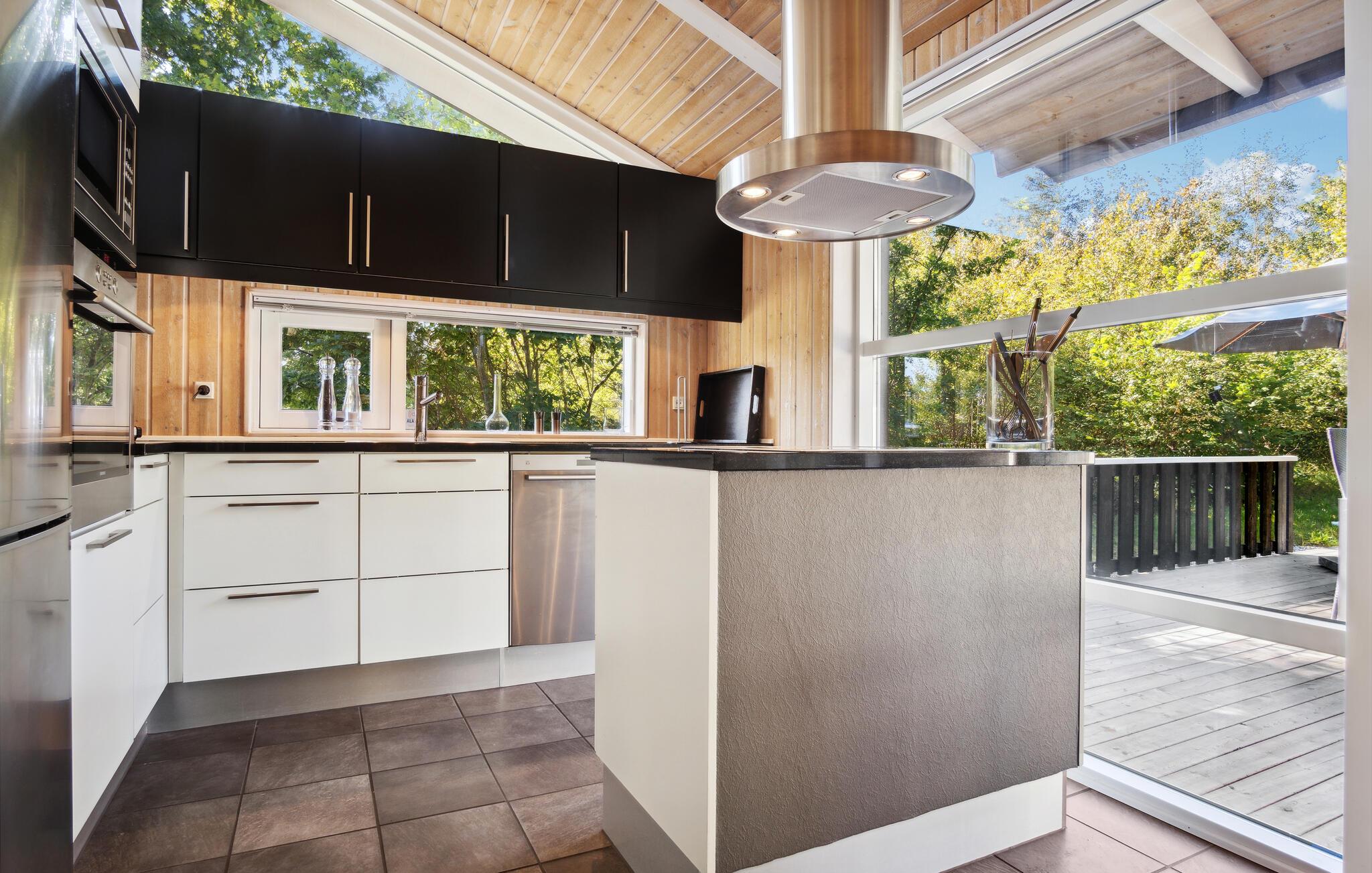 Dette flot indrettede og arkitektonisk meget spændende feriehus, byder velkommen til et rigtig dejligt ferieophold. I huset er der plads til to familier. Huset er velindrettet med tre hyggelige soveværelser og et dejligt veludstyret køkken, der er åbent ud til en spiseafdeling. I huset er der også en stor og meget hyggeligt møbleret stue, med udgang til en stor, åben og overdækket terrasse. Huset ligger i et område nær Djurslands bedste sandstrand og i gåafstand til byen, havnen og flere restauranter. Da området er meget roligt kan I holde en dejlig afslappet ferie, i skønne rammer.