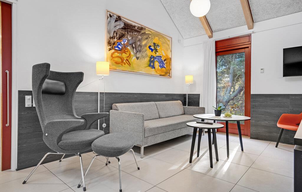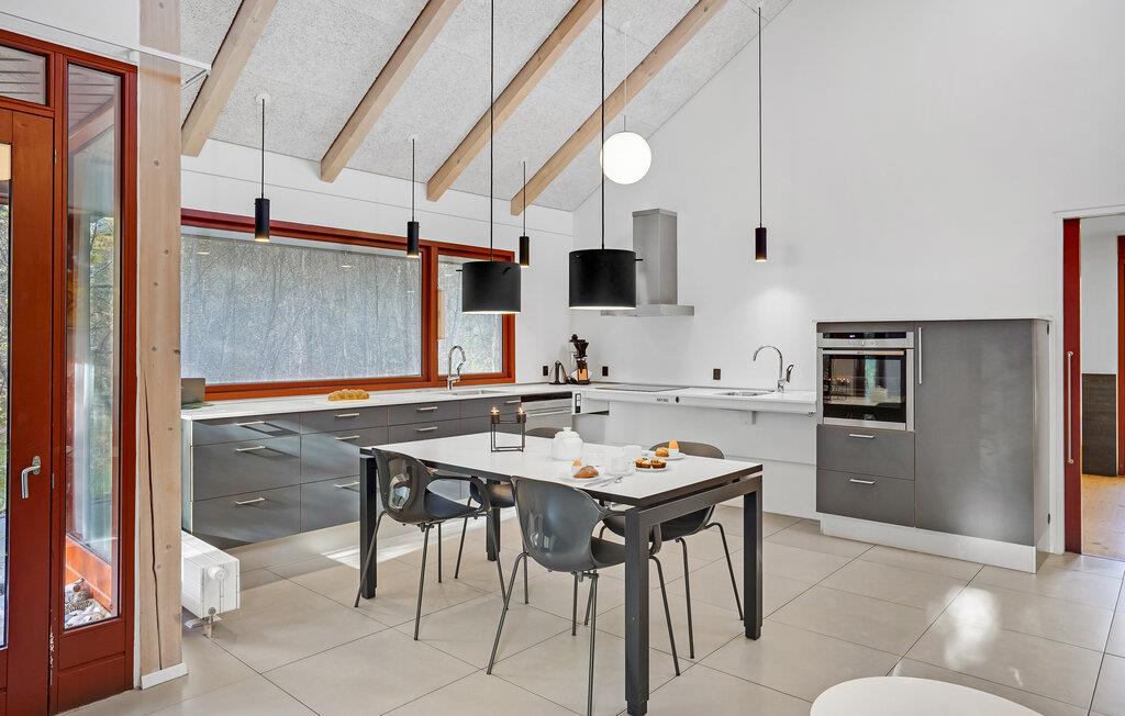 Dette lyse og venlige feriehus kan rumme op mod fem gæster og et lille barn. Huset er praktisk indrettet med gode detaljer som et stort opholdsrum, hvor I både kan sammensætte dagens menu og slappe af, mens ilden knitrer i brændeovnen. Vinduespartierne sørger for et skønt, naturligt lysindfald, hvilket giver jer ekstra behagelige rammer om indendørshyggen.