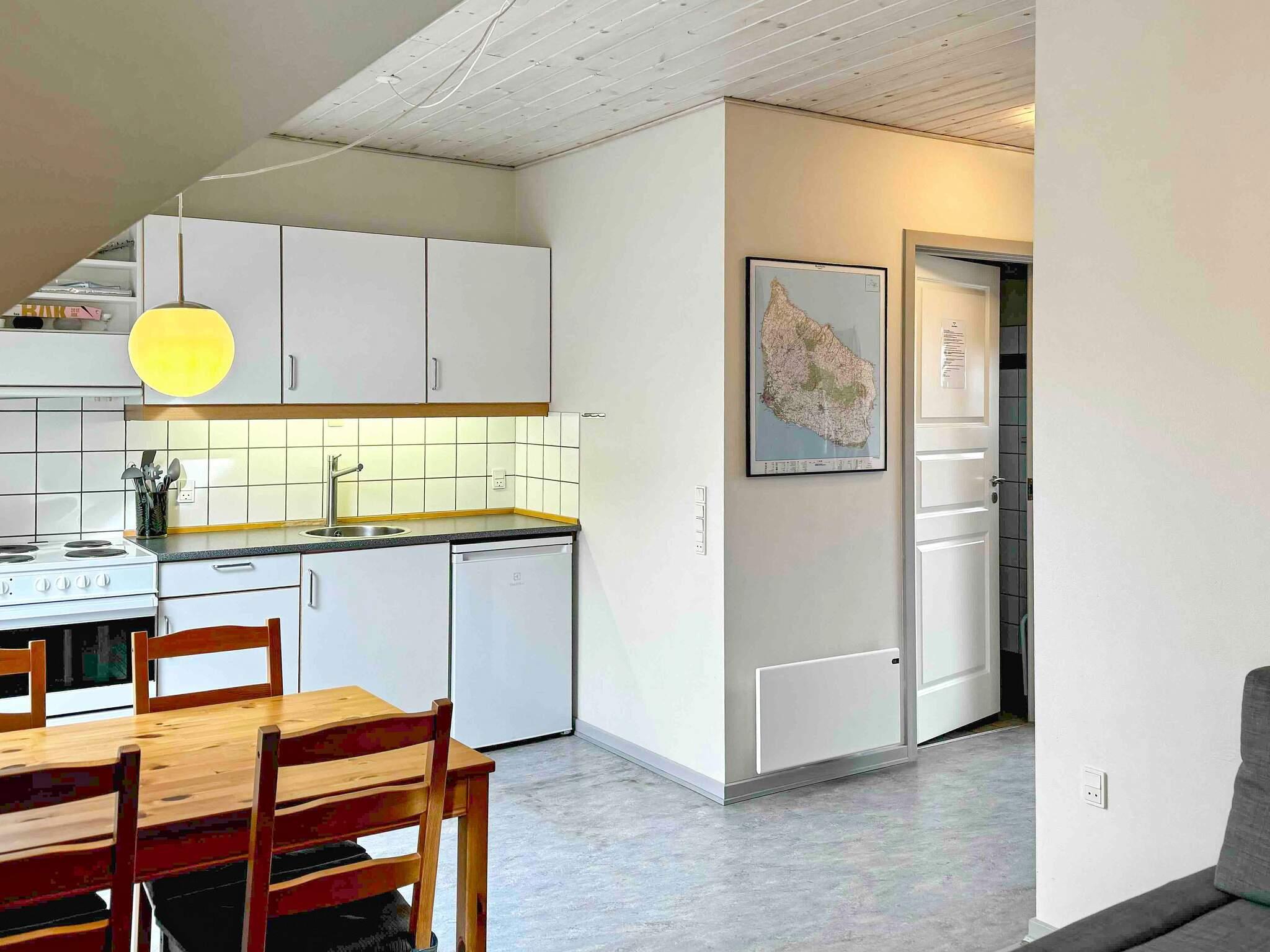 Lejlighed i midten af den idylliske by Gudhjem. Her bor I komfortabelt i hjertet af den måske mest kendte by på øen, og der er havkig fra terrassen. Lejligheden har hurtigt mobilt bredbånd, og der er fælles udendørs swimmingpool, som er åben fra 1. juni til 30. september.