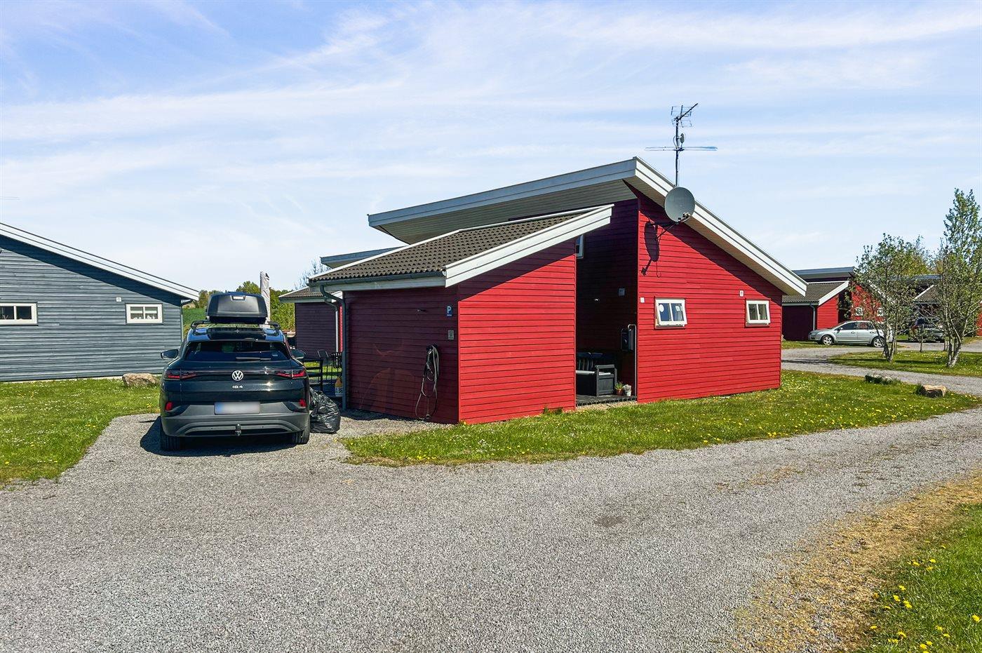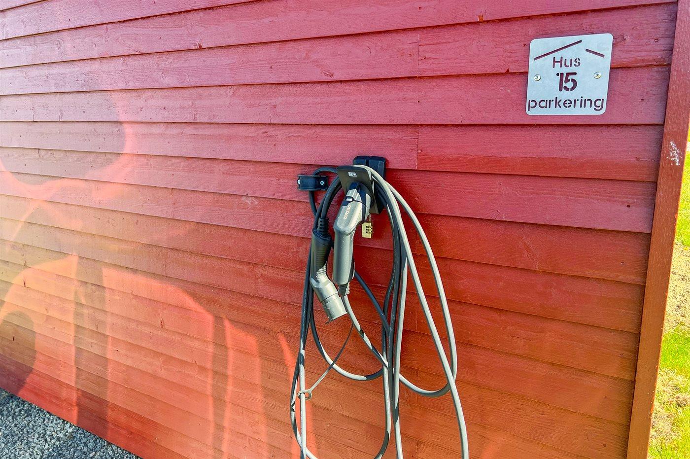Ferieboligen er beliggende på en 200 m² stor naturgrund. Der er 2800 m til havet. Nærmeste forretning er beliggende i en afstand af 6000 m. Der er en golfbane i en afstand af 100 m. Til ferieboligen hører 15 m² terrasseareal. Der er redskabsrum. Gasgrill og 2 solsenge står til rådighed. Der er installeret stik til opladning af elbil. Type 2 stik. Med 5,5 kW ladeeffekt. Parkering ved ferieboligen.