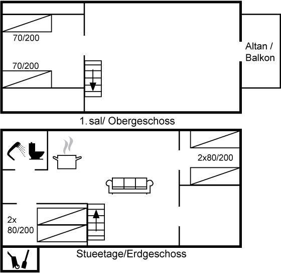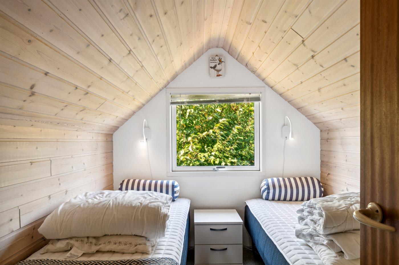 Der er i alt 3 soveværelser. Sovepladserne fordeler sig på: 2 sovepladser i dobbeltseng. 4 sovepladser i enkeltsenge.
