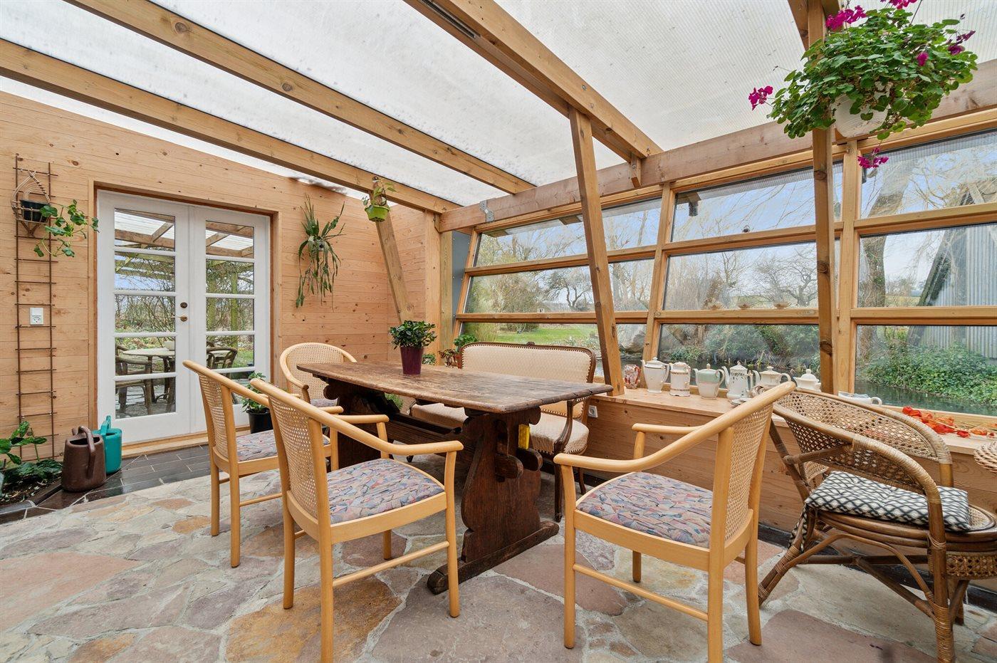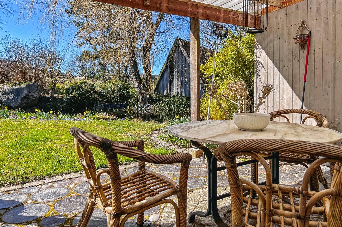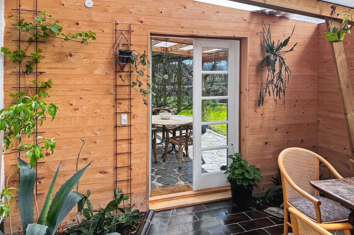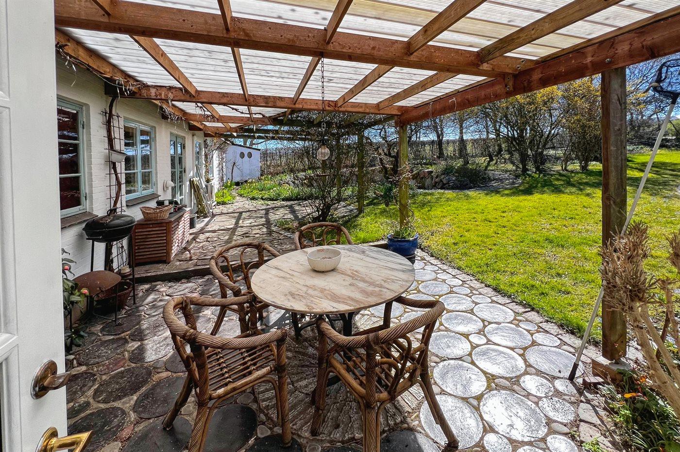 Der er flere delvis overdækkede terrasser og en tagterrasse med den fineste udsigt - at nyde morgenkaffen på første parket med et flot udblik kan kun være en fornøjelse. Den store have er en oplevelse i sig selv med en lille dam, stor nedsænket sandterrasse, og i det fjerneste hjørne høres hønsene klukke i deres aflukke. Lejer og ejer deler haven, og ejeren bruger visse dele af den. Ejer bor i hovedhuset.