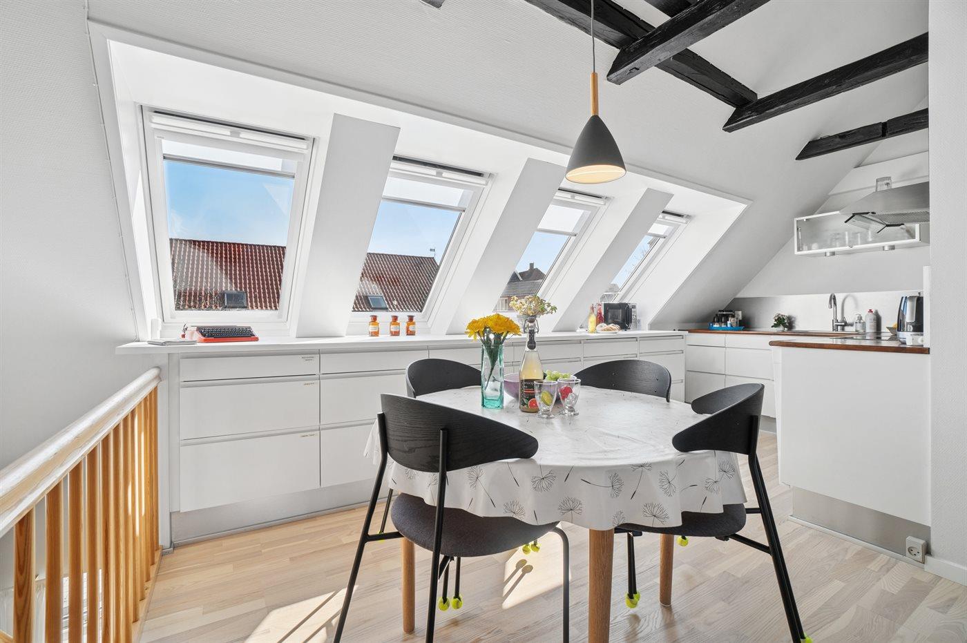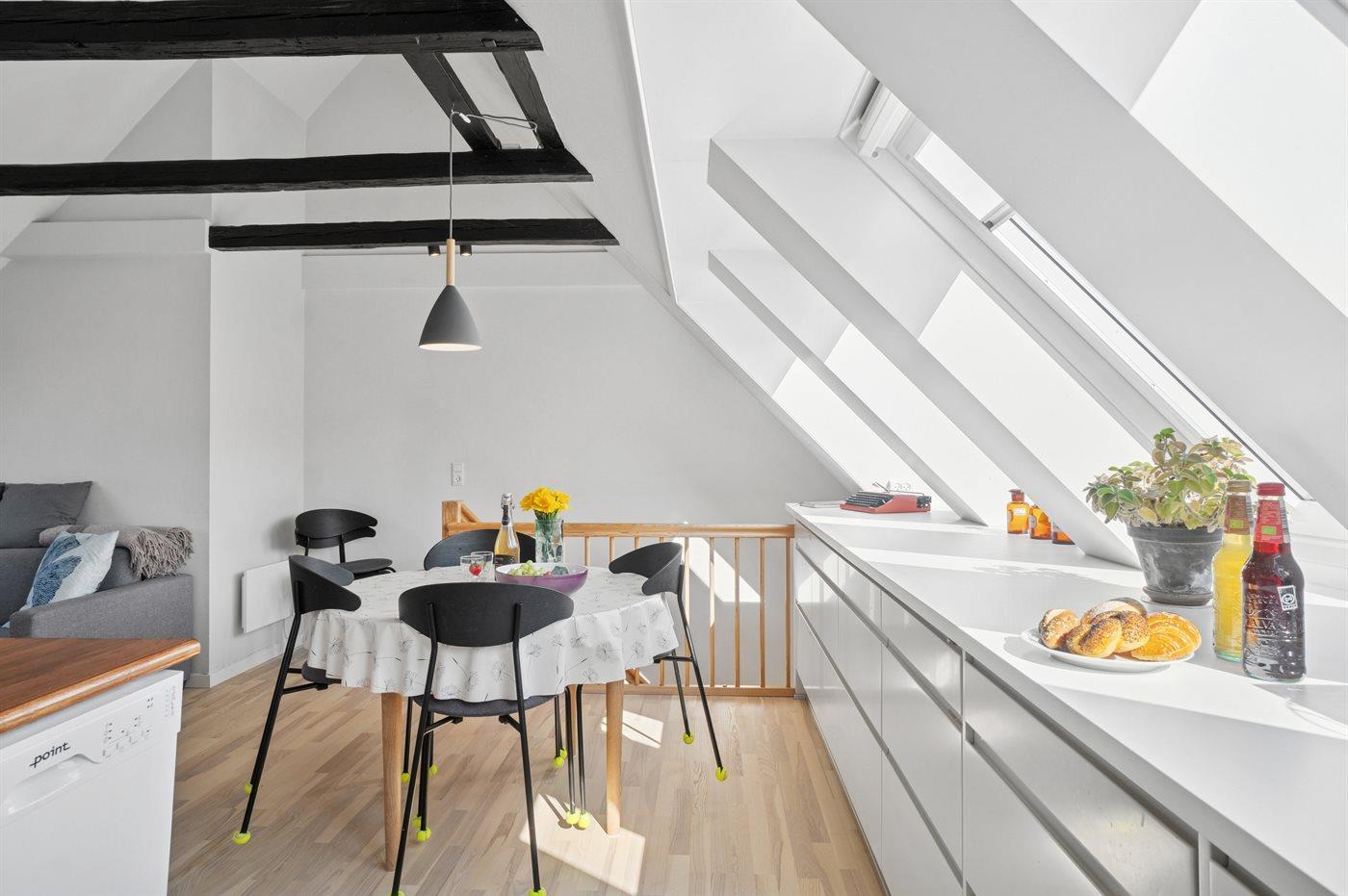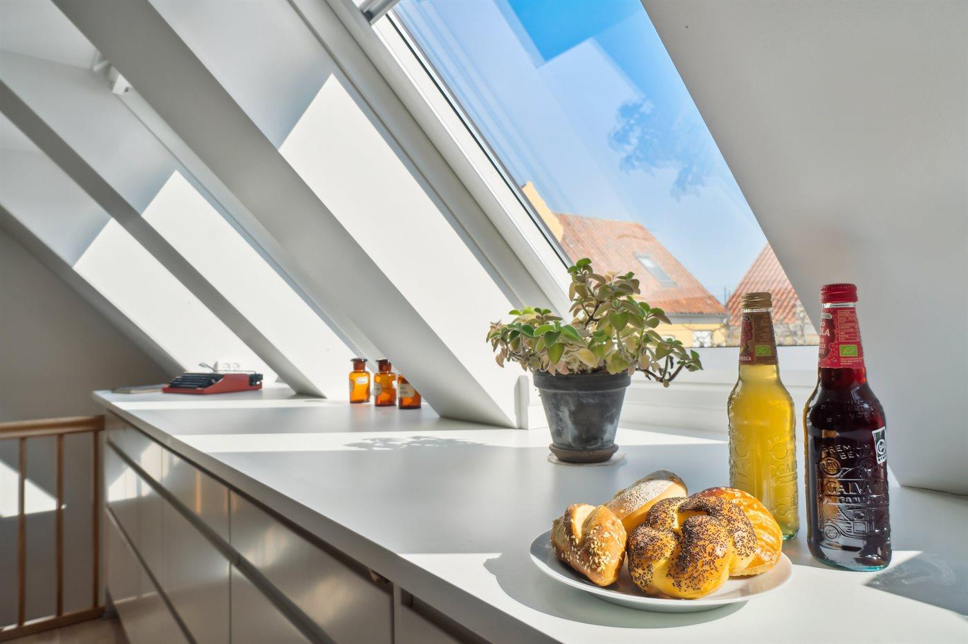 Køkkenet er udstyret med 1 køleskab. Der er 4 keramiske kogeplader, varmluftovn, mikrobølgeovn samt opvaskemaskine.