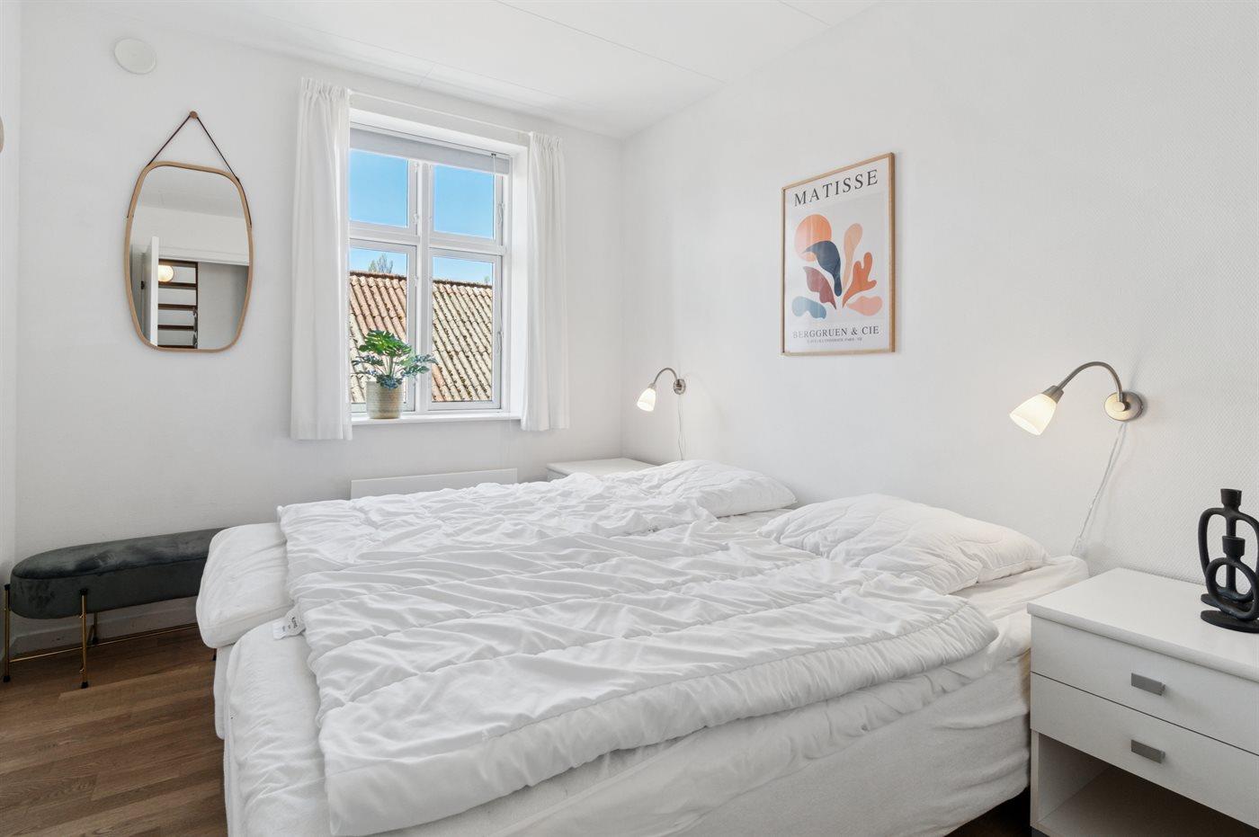 Der er i alt 2 soveværelser. Sovepladserne fordeler sig på: 2 sovepladser i dobbeltseng. 2 sovepladser i enkeltsenge.