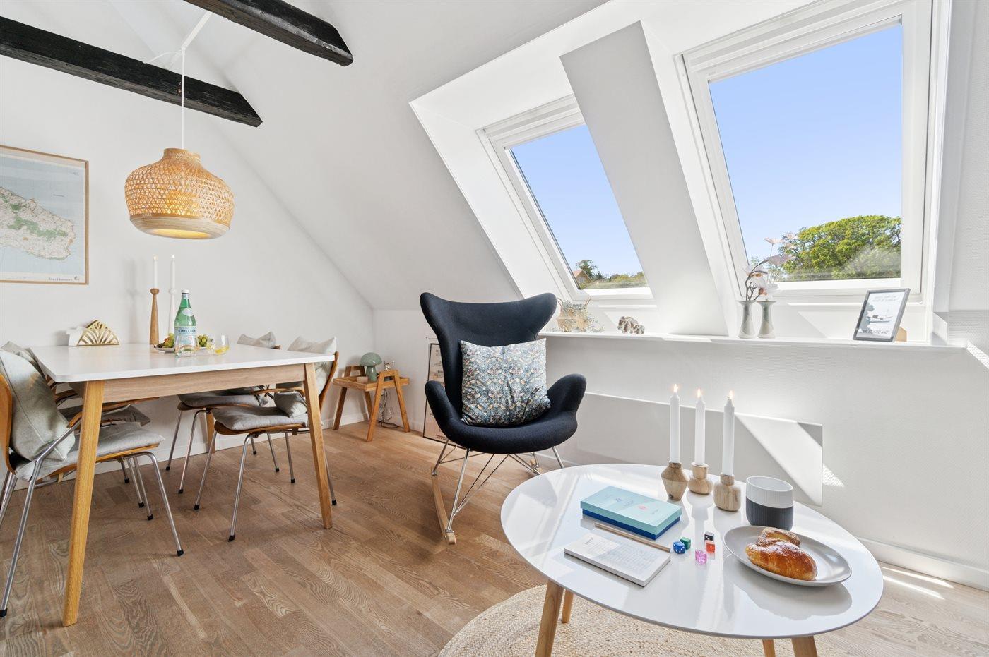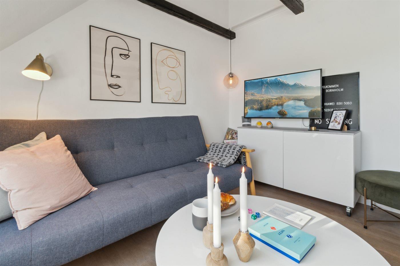 Ferielejligheden er ideel til et par med børn, men kan også anbefales til to vennepar, der vil opleve det magiske ved Gudhjem, der med sin klippehavn jo er forbindelseslinje til Christians Ø.