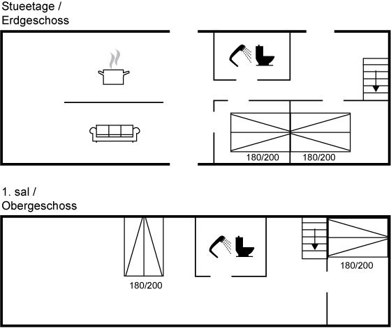 At betræde de flotte, lokalt fremstillede plankegulve giver virkelig en fornemmelse af autencitet og velvære. Der findes et åbent køkken med de hvidevarer, du har brug for, når der skal tilberedes lækre måltider i ferien. Køkkenet er kombineret med en fin spiseafdeling, hvor patina også spiller en rolle. Der findes også en større opholdsstue med en sofagruppe, som er vendt mod den hyggelige brændeovn – her kan man hygge sig med en god snak eller med en god bog.