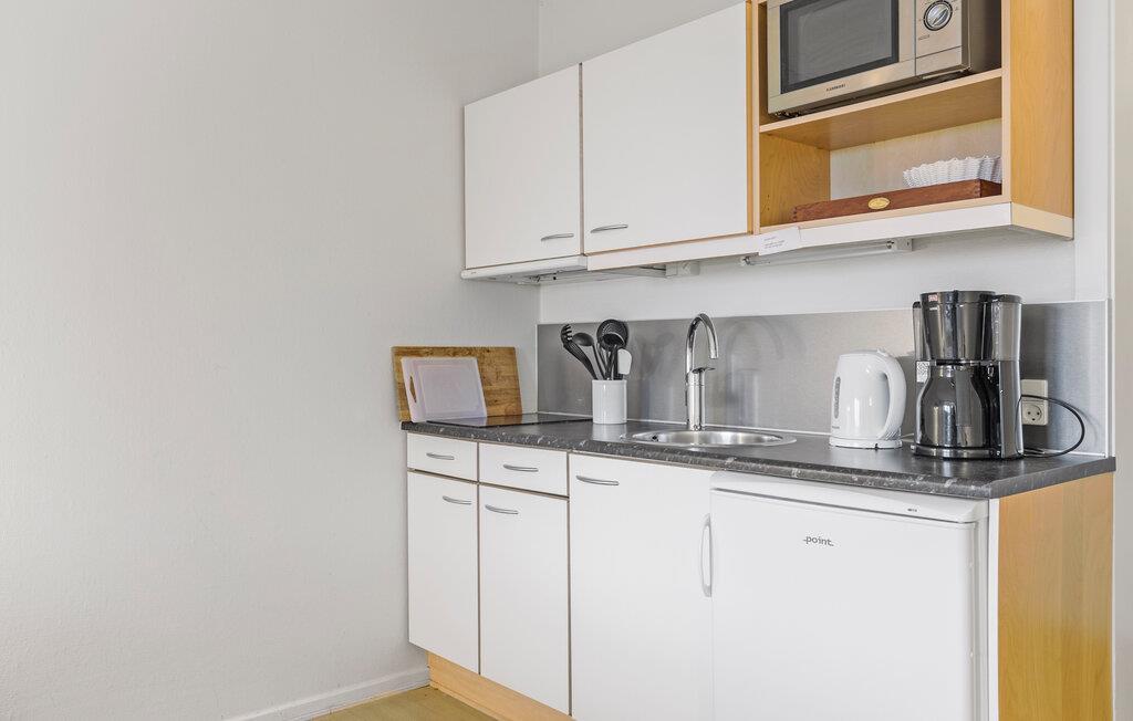 Denne ferielejlighed i stueetagen i maleriske Gudhjem er noget særligt med sin kompakthed og hyggelige atmosfære. Samtidig er der udsigt til det glitrende hav fra terrassen. Lejlighedens lyse møbler skaber en indbydende atmosfære. I kan slappe af i opholdsstuen efter en begivenhedsrig dag. I kan også bruge tekøkkenet til at tilberede lækre snacks til jeres udflugter. Nyd udsigten til det grønne gennem de store vinduespartier og lad freden og roen virke sin magi på jer. begynd dagene med en kop kaffe på den lille, private terrasse, omgivet af velholdte grønne områder.