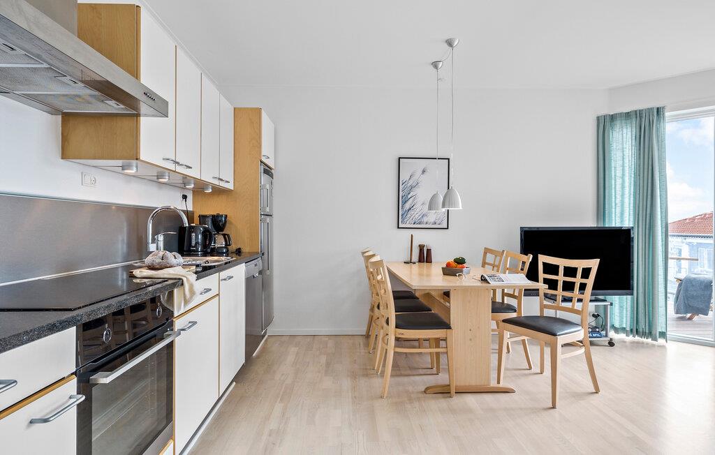 Lejlighederne i komplekset er identiske, og hvis I gerne vil rejse som en større flok, finder I et stort udvalg af boliger, så I kan holde ferie sammen og stadig nyde mulighed for privatliv og god komfort. Indretningen fremtræder lyst og komfortabelt med velvalgte materialer og et fuldt udstyret køkken, hvor I kan tilberede familiens livretter efter en herlig dag på farten. Senere kan I hive brætspillene frem eller rykke over i stuen med snacks og en god film, mens I lægger planer for de kommende dage.