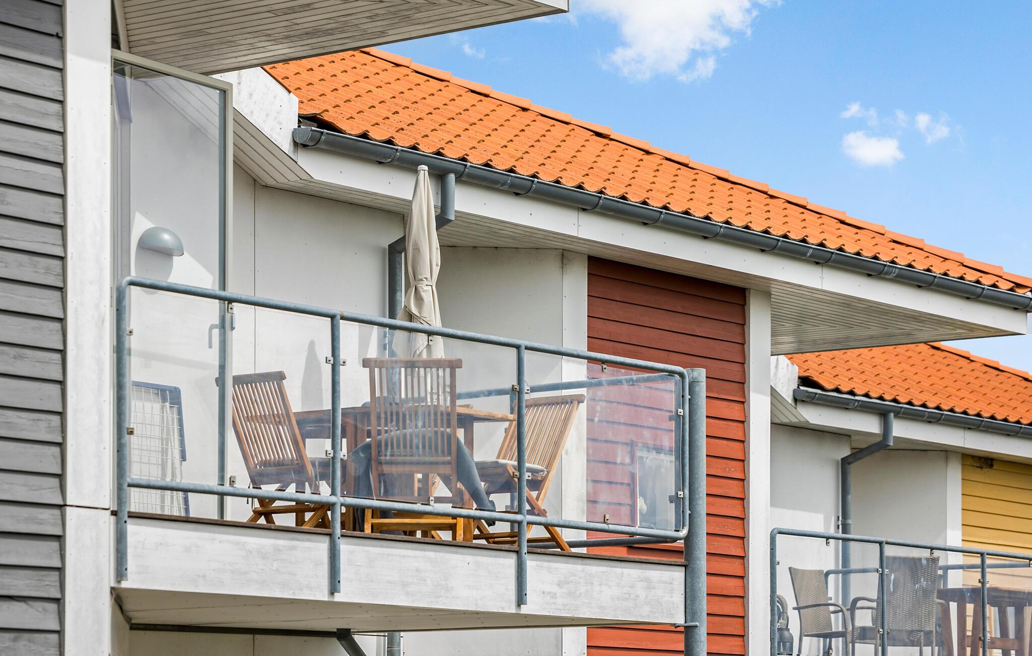 Til lejligheden hører to terrasser. Den ene er foran indgangsdøren, den anden er ved siden af stuen, så I kan finde sol, skygge og læ efter behov i løbet af dagen. Herfra kan I også spejde ud over havet, som kun er en kort gåtur væk.