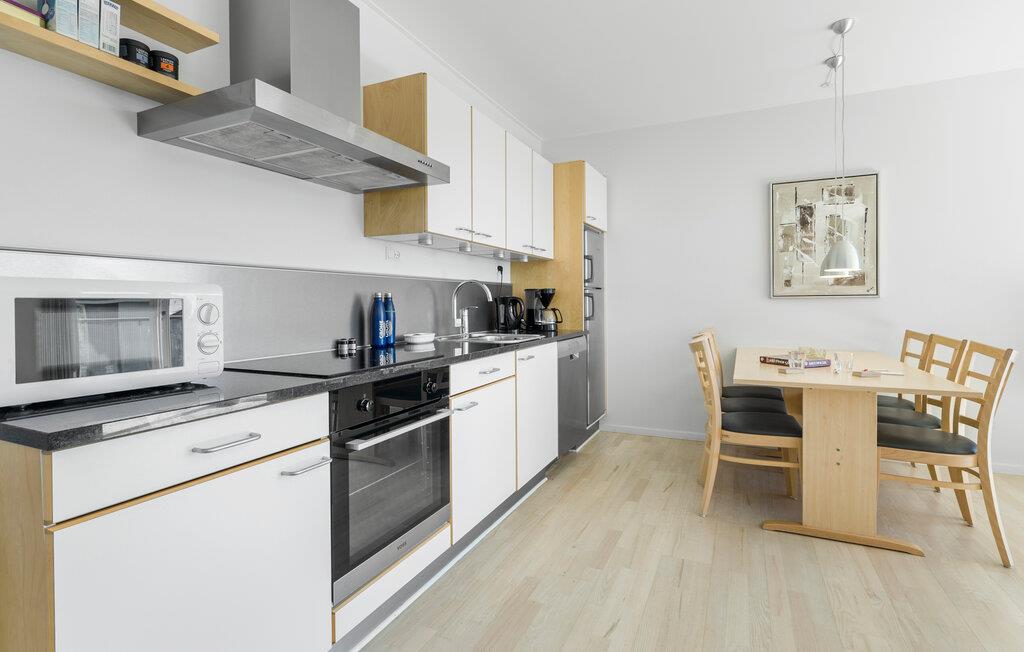 Lejlighederne i komplekset er identiske, og hvis I gerne vil rejse som en større flok, finder I et stort udvalg af boliger, så I kan holde ferie sammen og stadig nyde mulighed for privatliv og god komfort. Indretningen fremtræder lyst og komfortabelt med velvalgte materialer og et fuldt udstyret køkken, hvor I kan tilberede familiens livretter efter en herlig dag på farten. Senere kan I hive brætspillene frem eller rykke over i stuen med snacks og en god film, mens I lægger planer for de kommende dage.