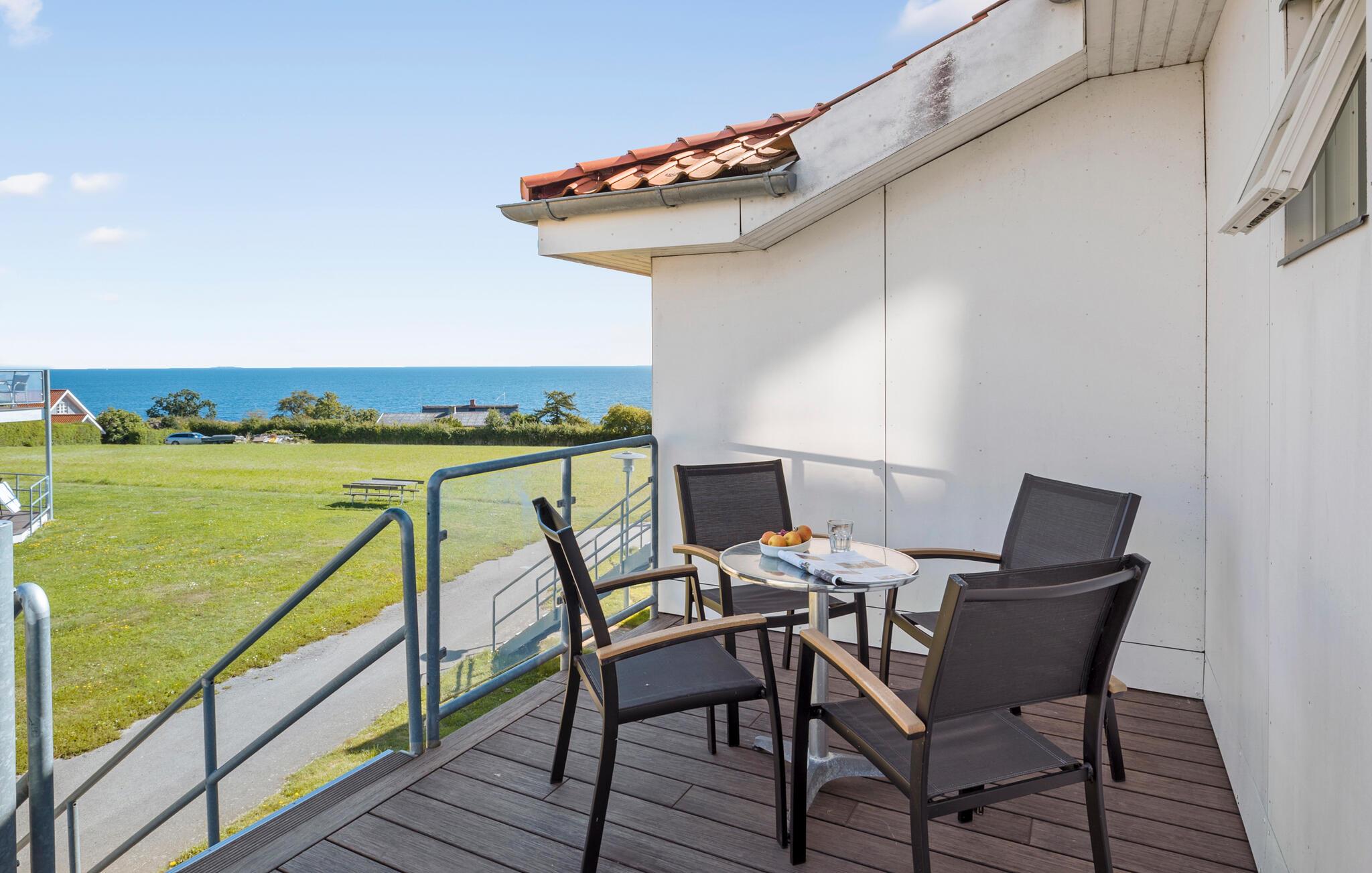 Til lejligheden hører to terrasser. Den ene er foran indgangsdøren, den anden er ved siden af stuen, så I kan finde sol, skygge og læ efter behov i løbet af dagen. Herfra kan I også spejde ud over havet, som kun er en kort gåtur væk.