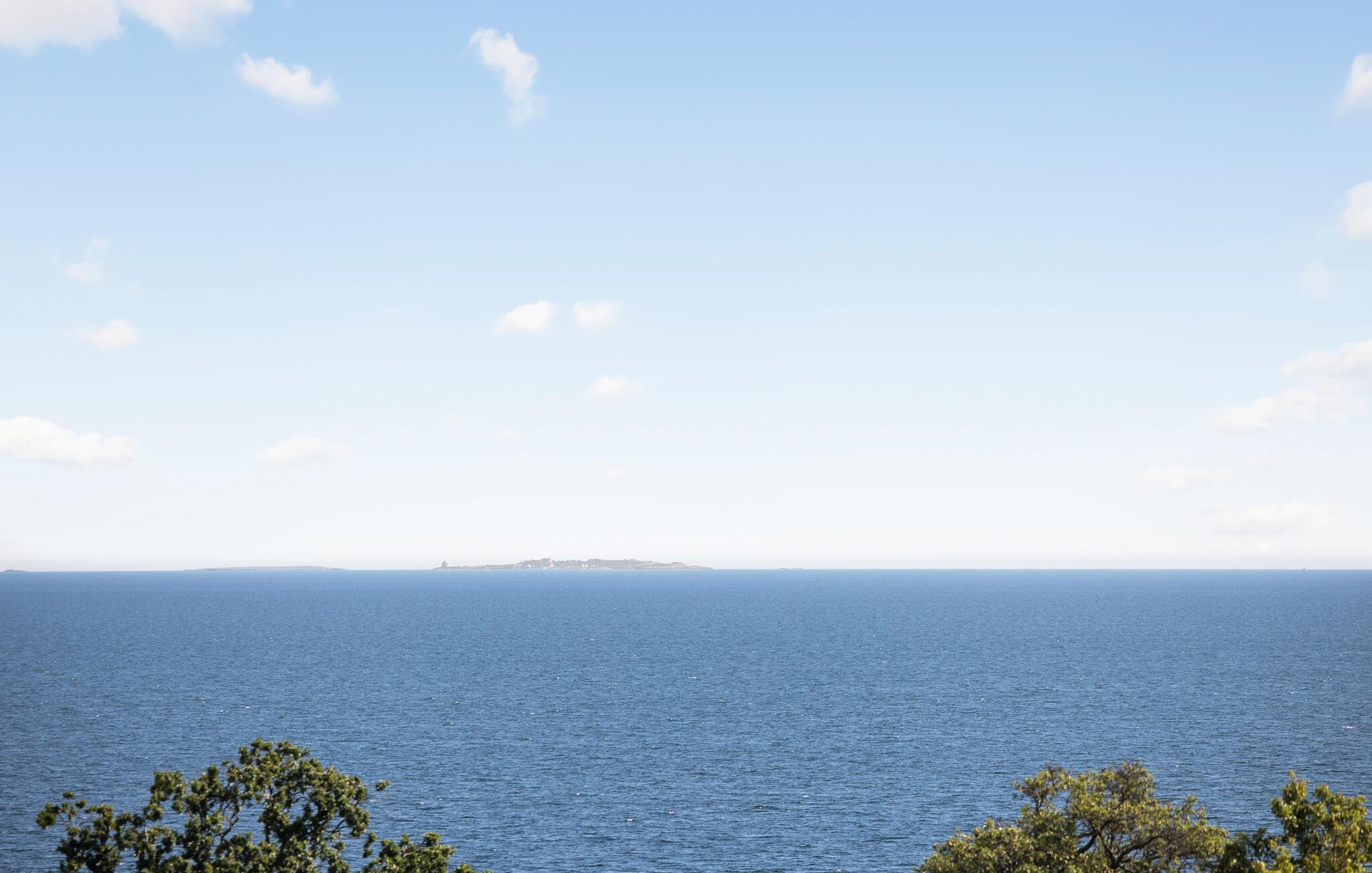 Moderne ferielejlighed i Gudhjem med havudsigt, to terrasser og kort afstand til strand og byliv.