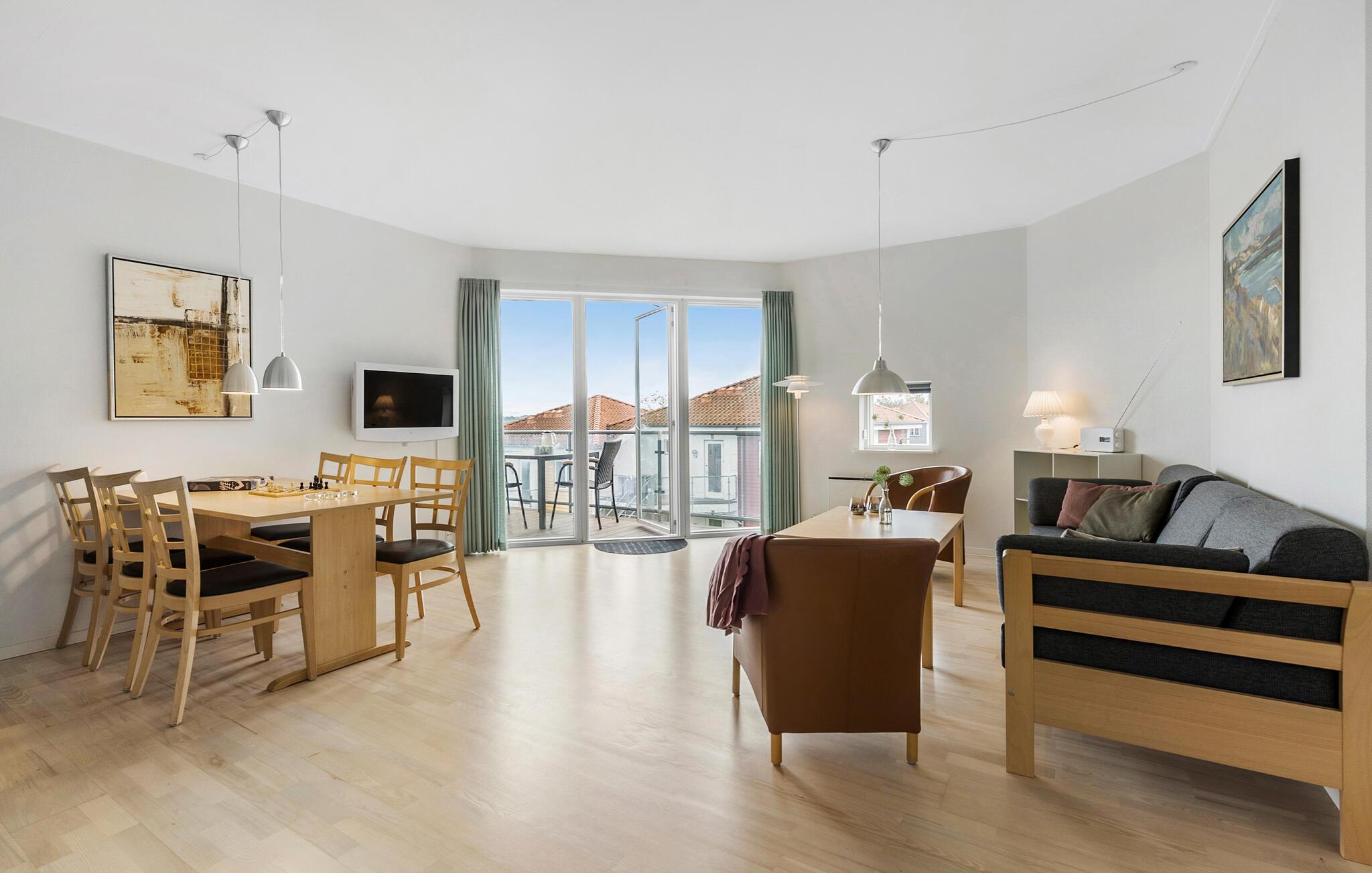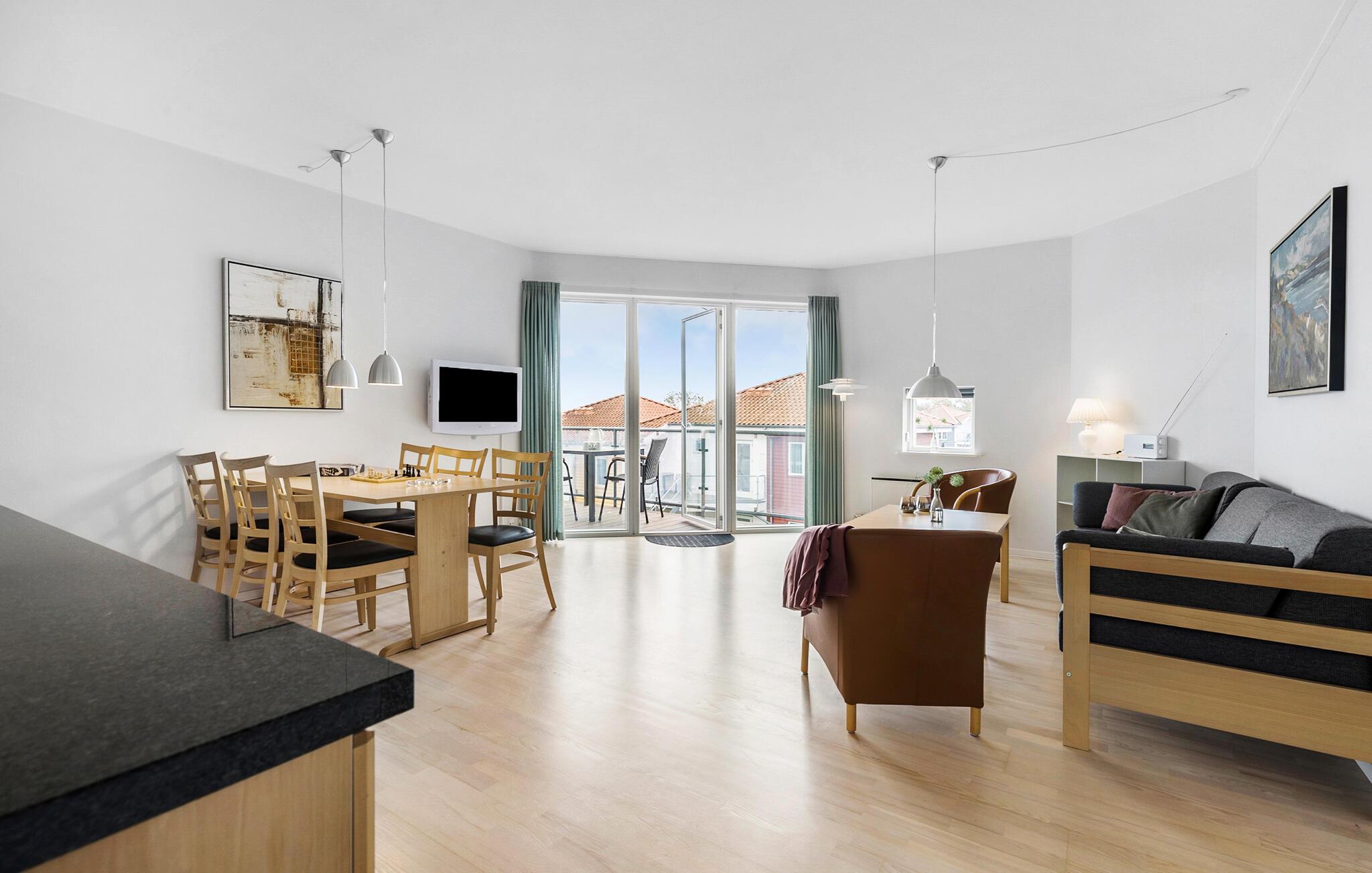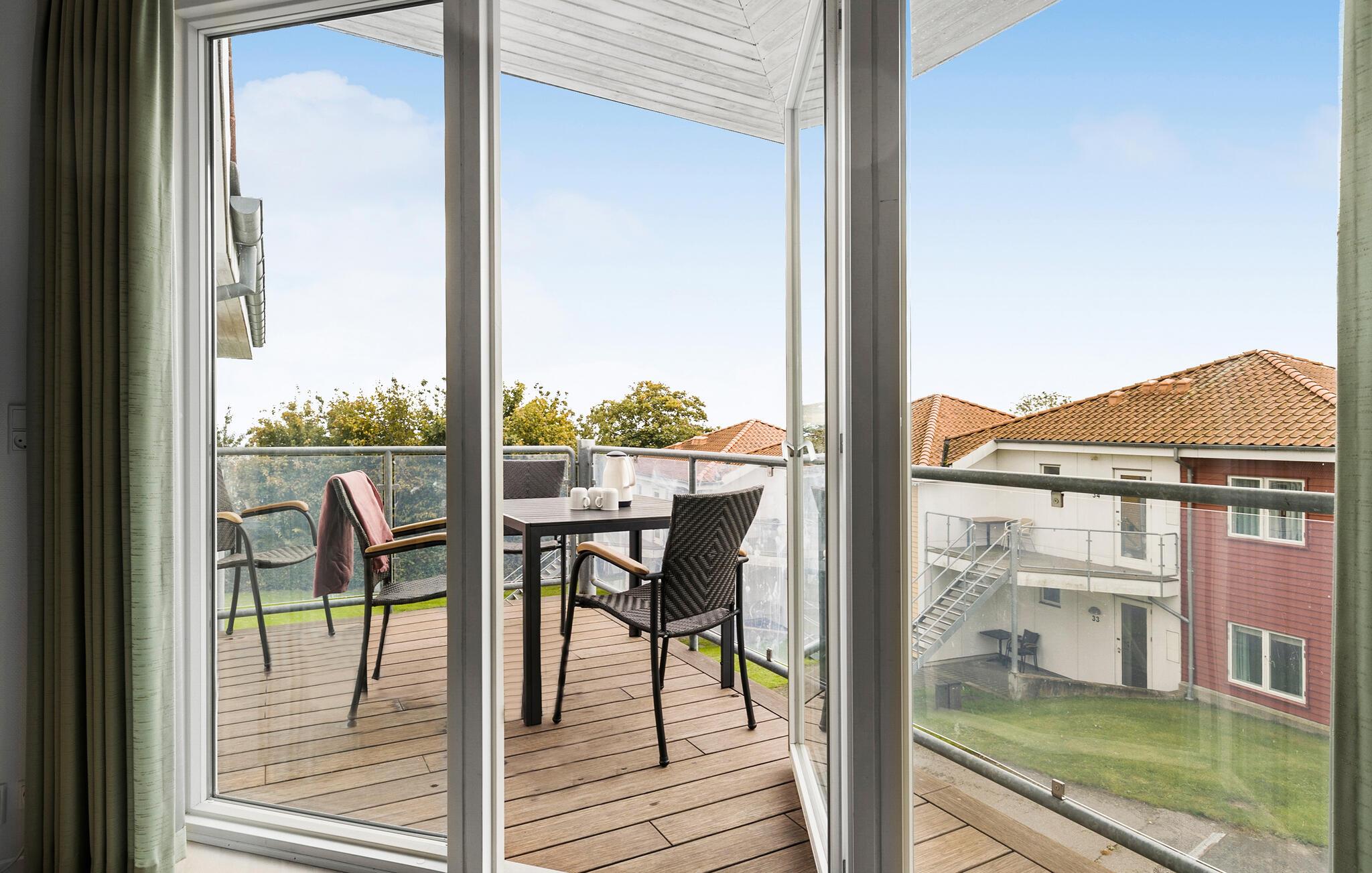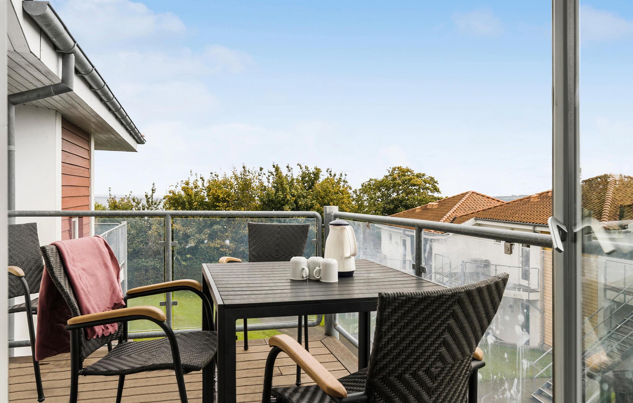 Charmerende ferielejlighed i Gudhjem med havudsigt, balkon og moderne faciliteter for en afslappende ferie på Bornholm.