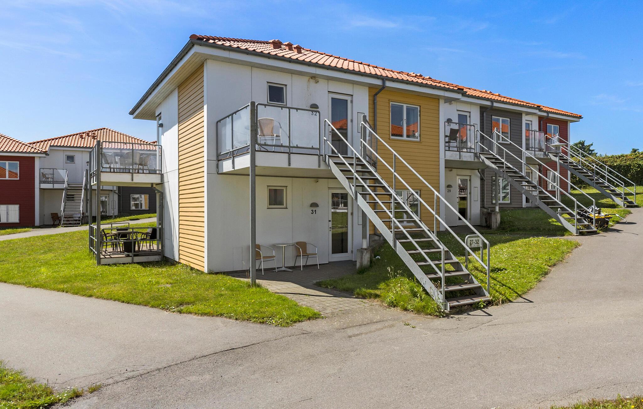 Velkommen til denne indbydende ferielejlighed, som er en del af en bebyggelse, der tilbyder mange ens lejligheder. Hvis I rejser sammen med venner eller en stor familie, finder I her et stort udvalg af boliger, så I kan holde ferie sammen. Træd ind i denne smukke og lyse lejlighed, og glæd jer over den lyse atmosfære og komforten. Nyd ferielivet med madlavning, fælles middage, spil og afslapning, og brug de to terrasseområder både foran indgangsdøren og i forlængelse af stuen. Få også et glimt af havet, som ligger i gåafstand herfra.