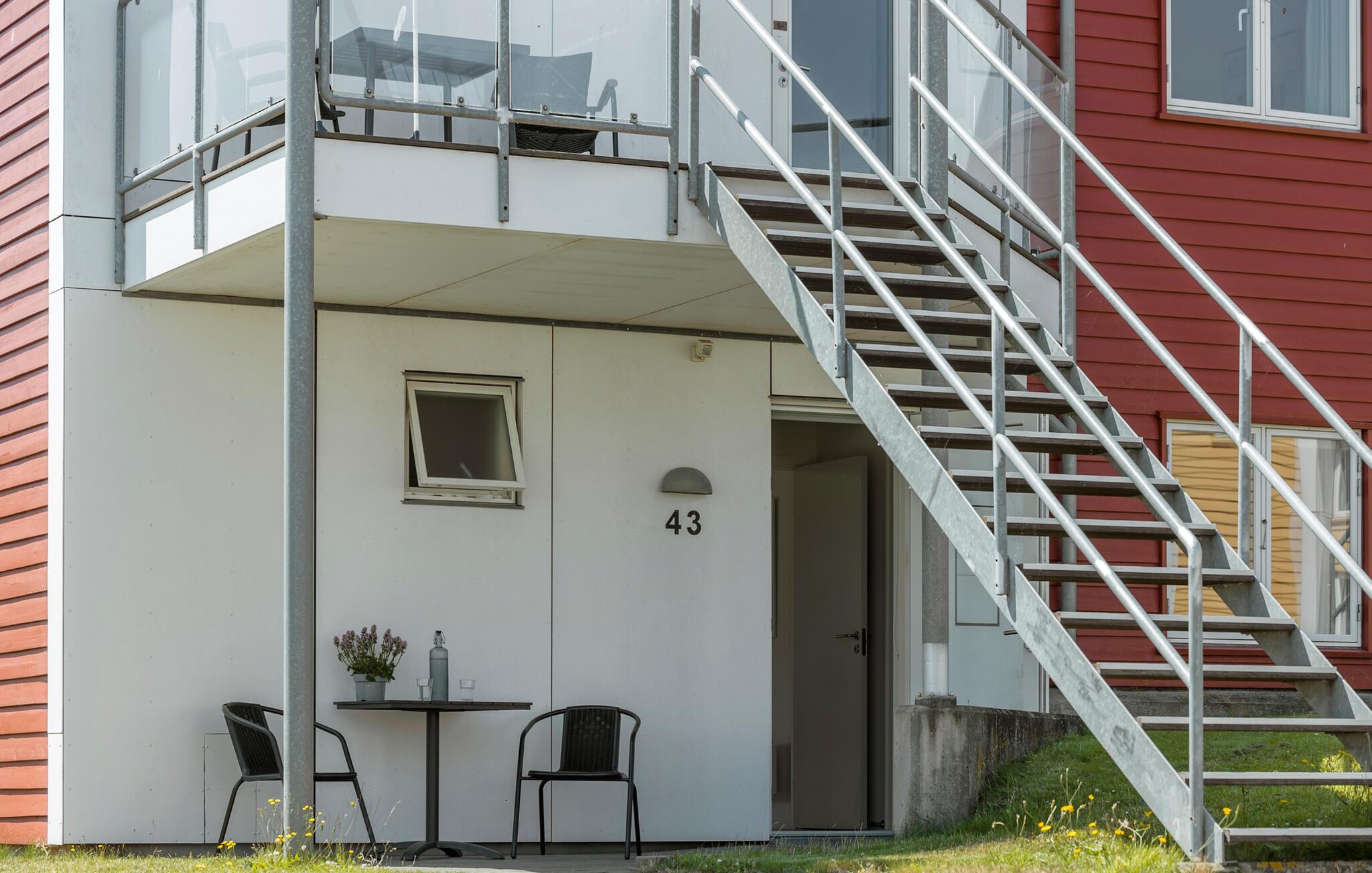 Til lejligheden hører to terrasser. Den ene er foran indgangsdøren, den anden er ved siden af stuen, så I kan finde sol, skygge og læ efter behov i løbet af dagen. Herfra kan I også spejde ud over havet, som kun er en kort gåtur væk.