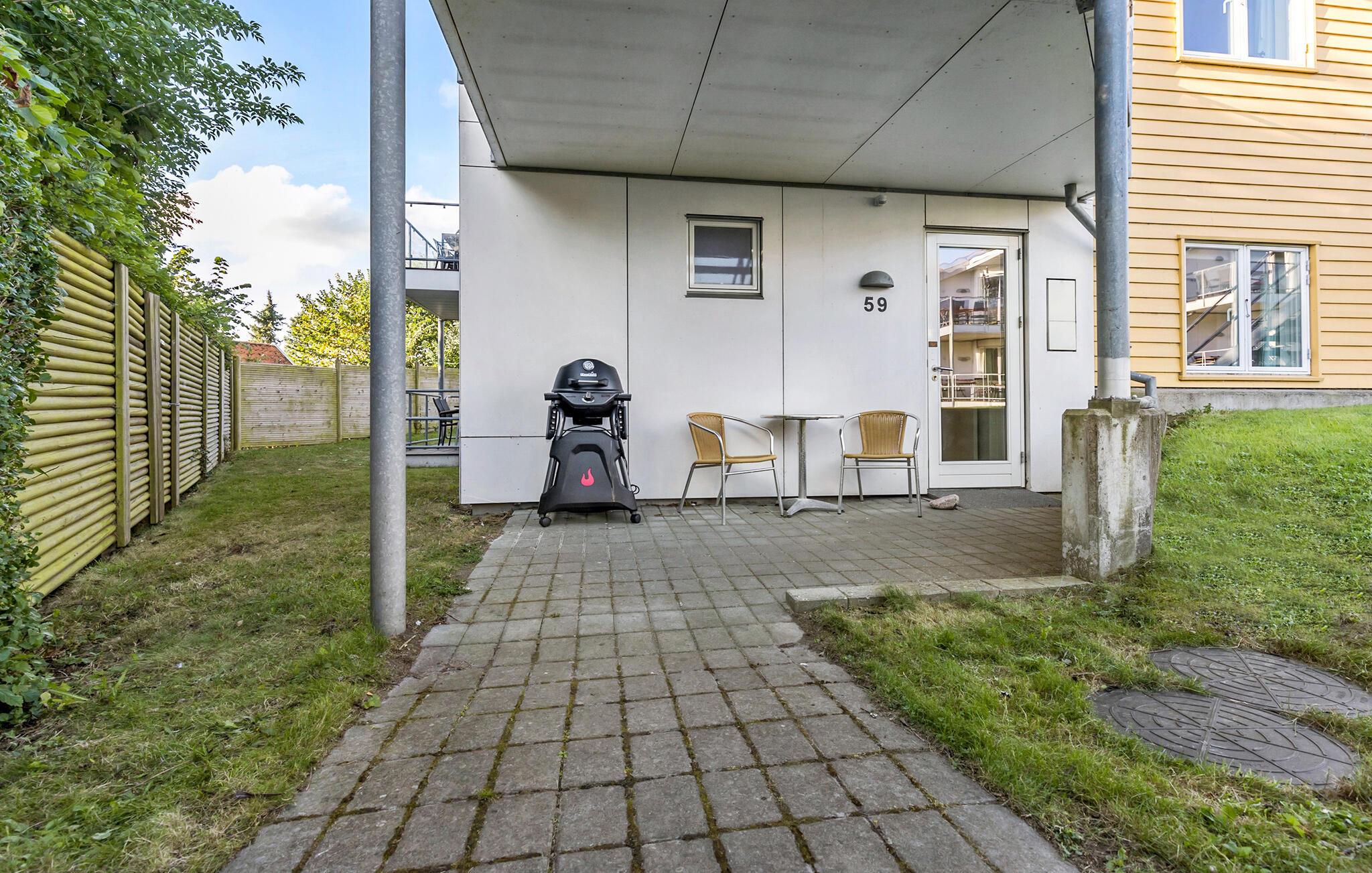 På de to terrasser kan I tilbringe de lune sommeraftener med et dejligt måltid og nyde den friske havluft. Har I børn med, er der flere forskellige legestativer i fællesarealet, og der er desuden kun en kort gåtur ned til vandet.
