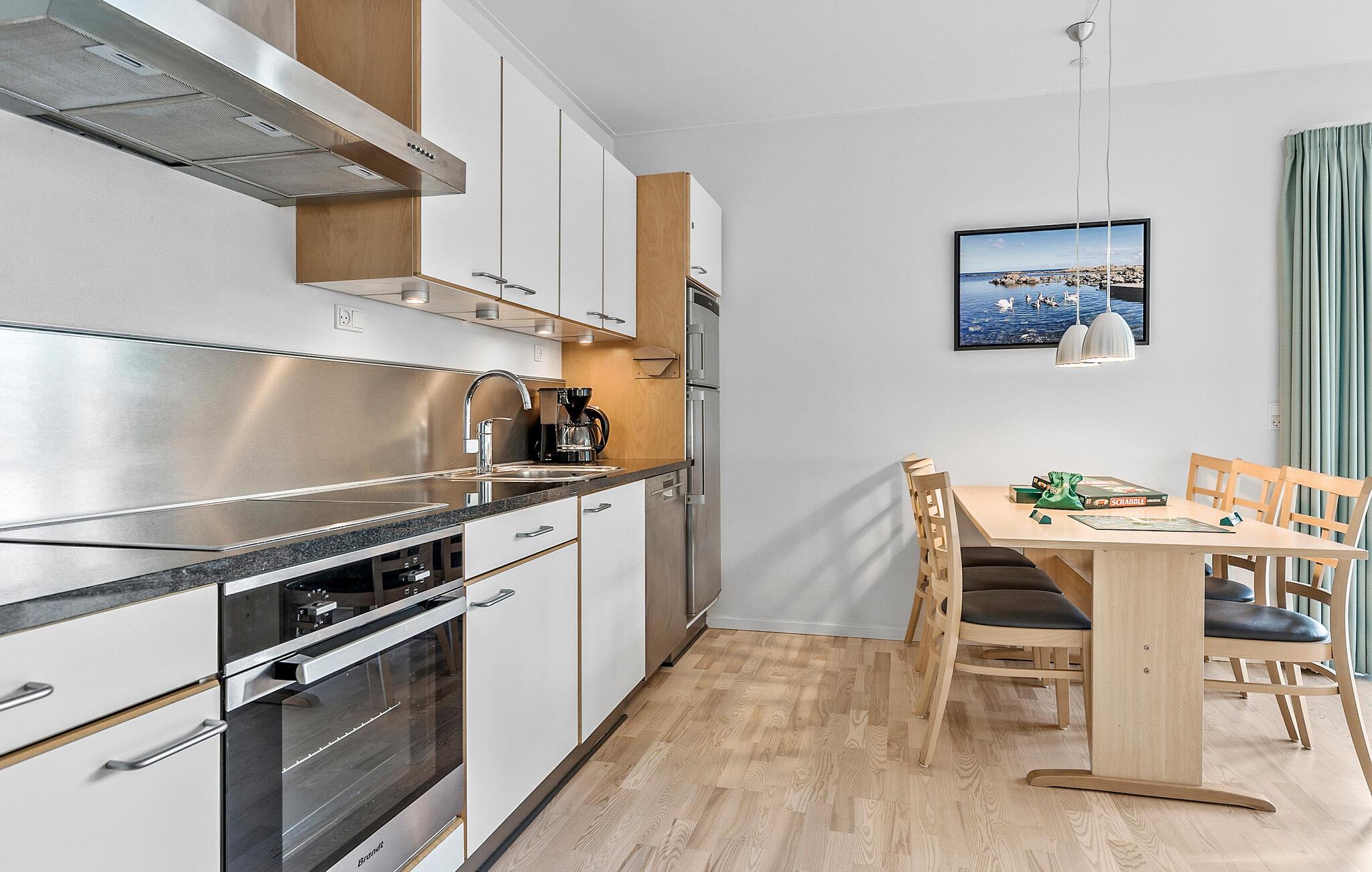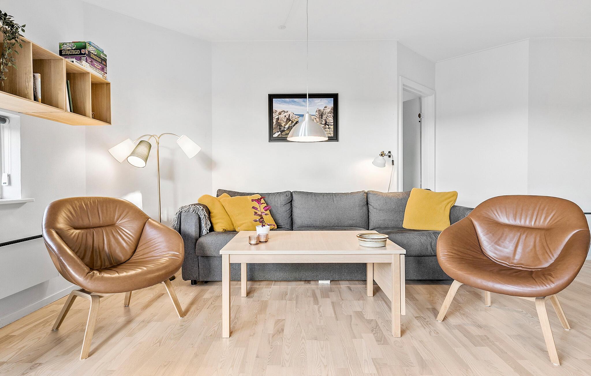 Velkommen til Bornholm og denne smagfulde lejlighed, som giver jer en herlig ramme om jeres feriedage på øen. Boligens hjerte er et lyst og indbydende opholdsrum, hvor I kan nyde hinandens selskab og samles om alt fra brætspil til bøger og en god film. Her kan alle lade op på hver deres måde, inden det igen går løs med oplevelser.