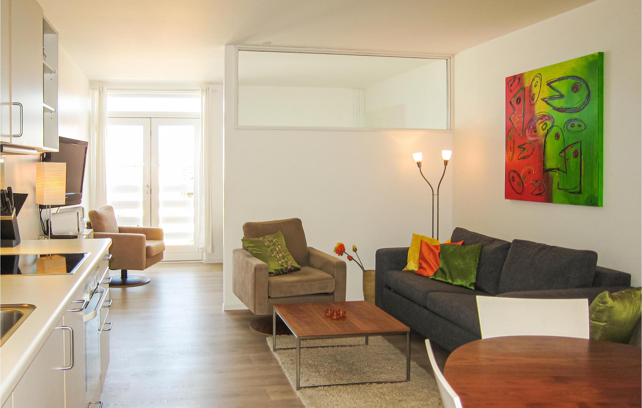 Sammensæt ferieretterne i den moderne køkkenafdeling, der ligger i åben forbindelse med opholdrummet, hvor I kan give jer god tid omkring spisebordet og slappe af i sofaen. Soveværelset er dejligt rummeligt og adskilt fra stuen af en skydedør. I har desuden udgang til en mindre terrasse med havemøbler, hvor I kan tage en pause i solen.